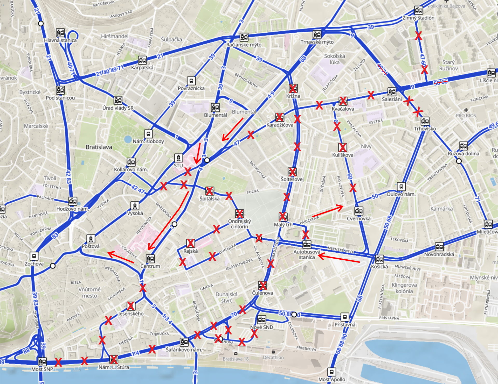 Niektoré autobusové linky sú na potrebnú čas odklonené ale nezasahuje ťa výluka veľkú skupinu obyvateľov ...