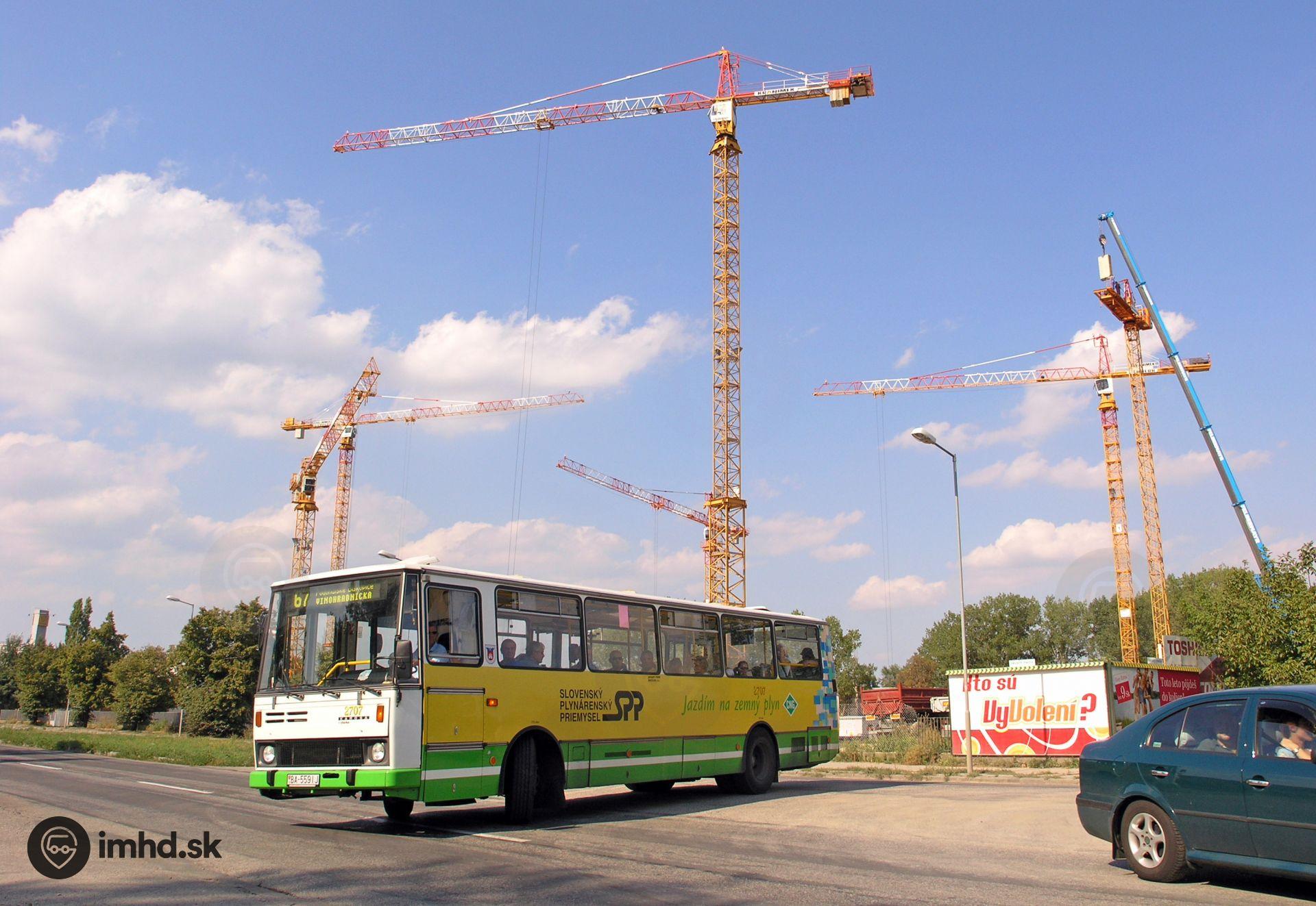 #2707 obchádza uzavreté železničné priecestie Trnavská - Ivanská cesta cez Tomášikovu ulicu popri stavbe obytného koplexu Koloseo.
