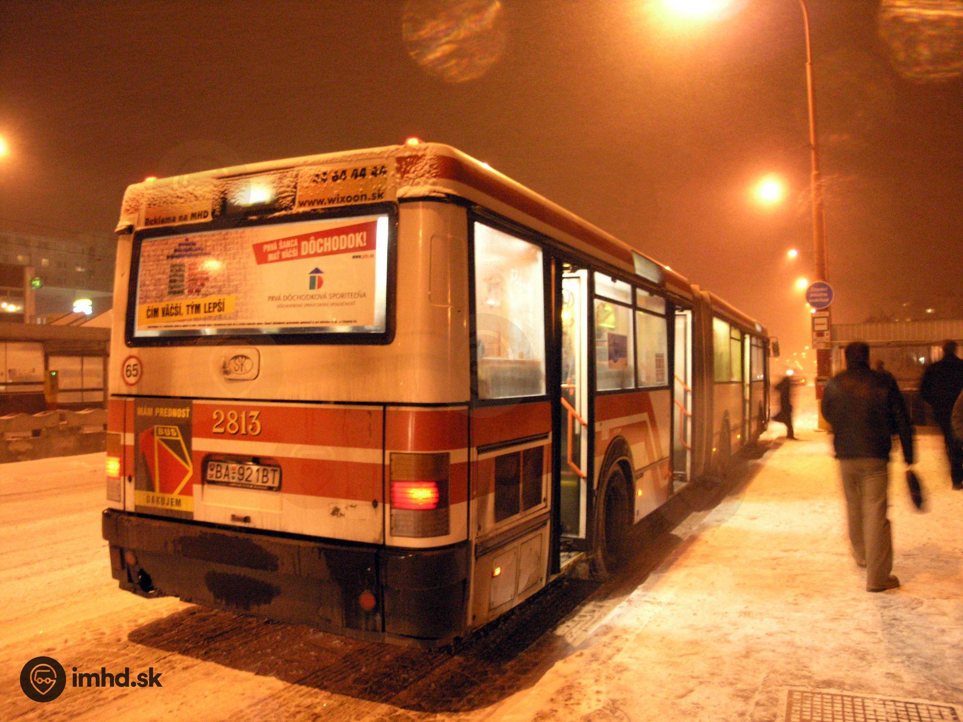 #2813 v zasneženej Dúbravke na zastávke OD Saratov.