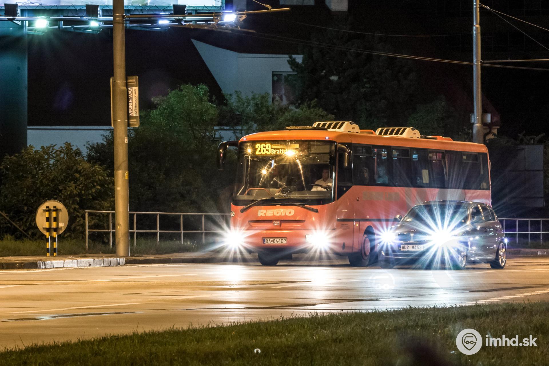 Prímestský autobus z Malaciek čaká na signál voľno