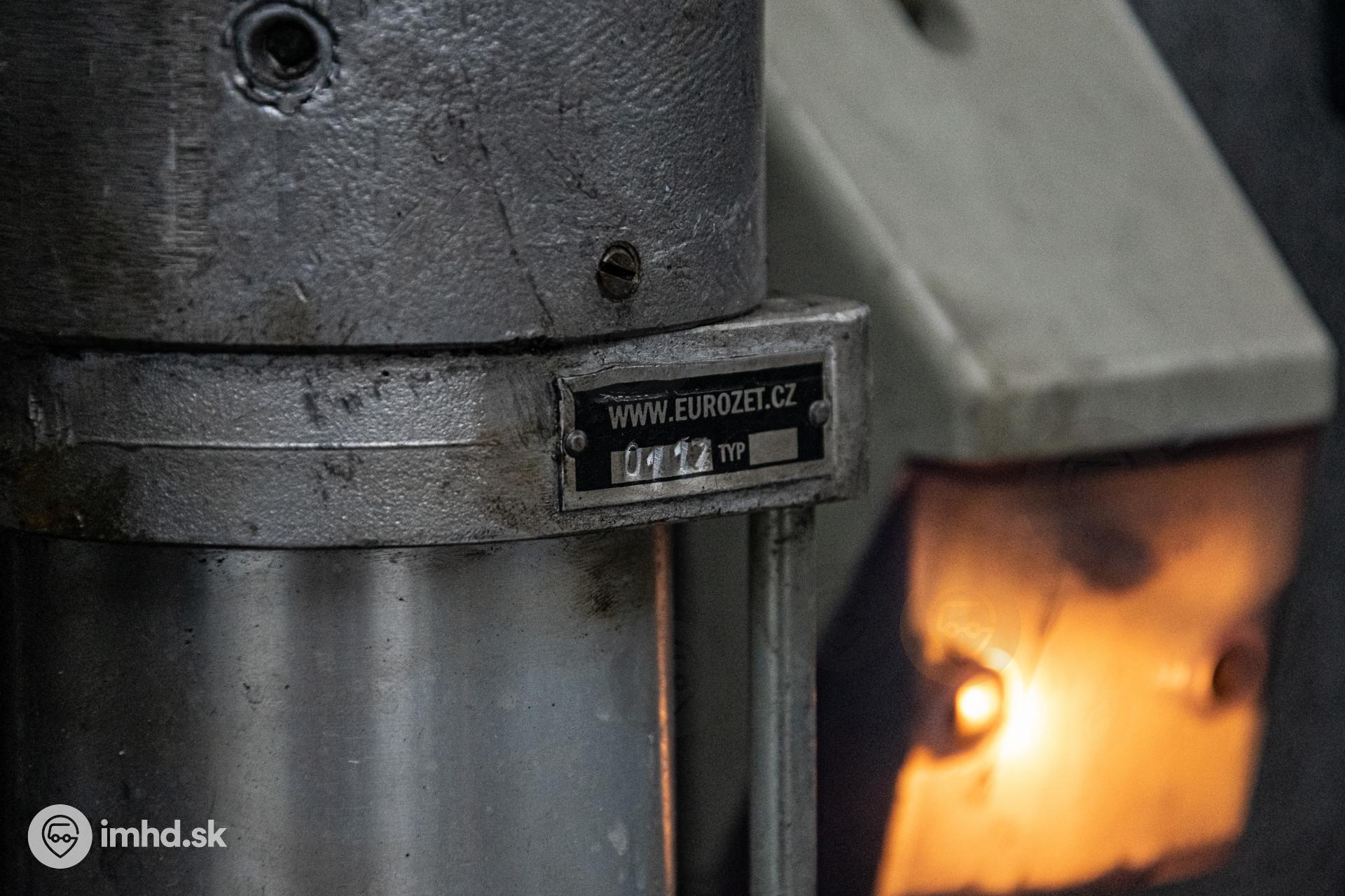 Detailný pohľad na štítok, ktorý je pripevnený na vzduchový valec dverí.