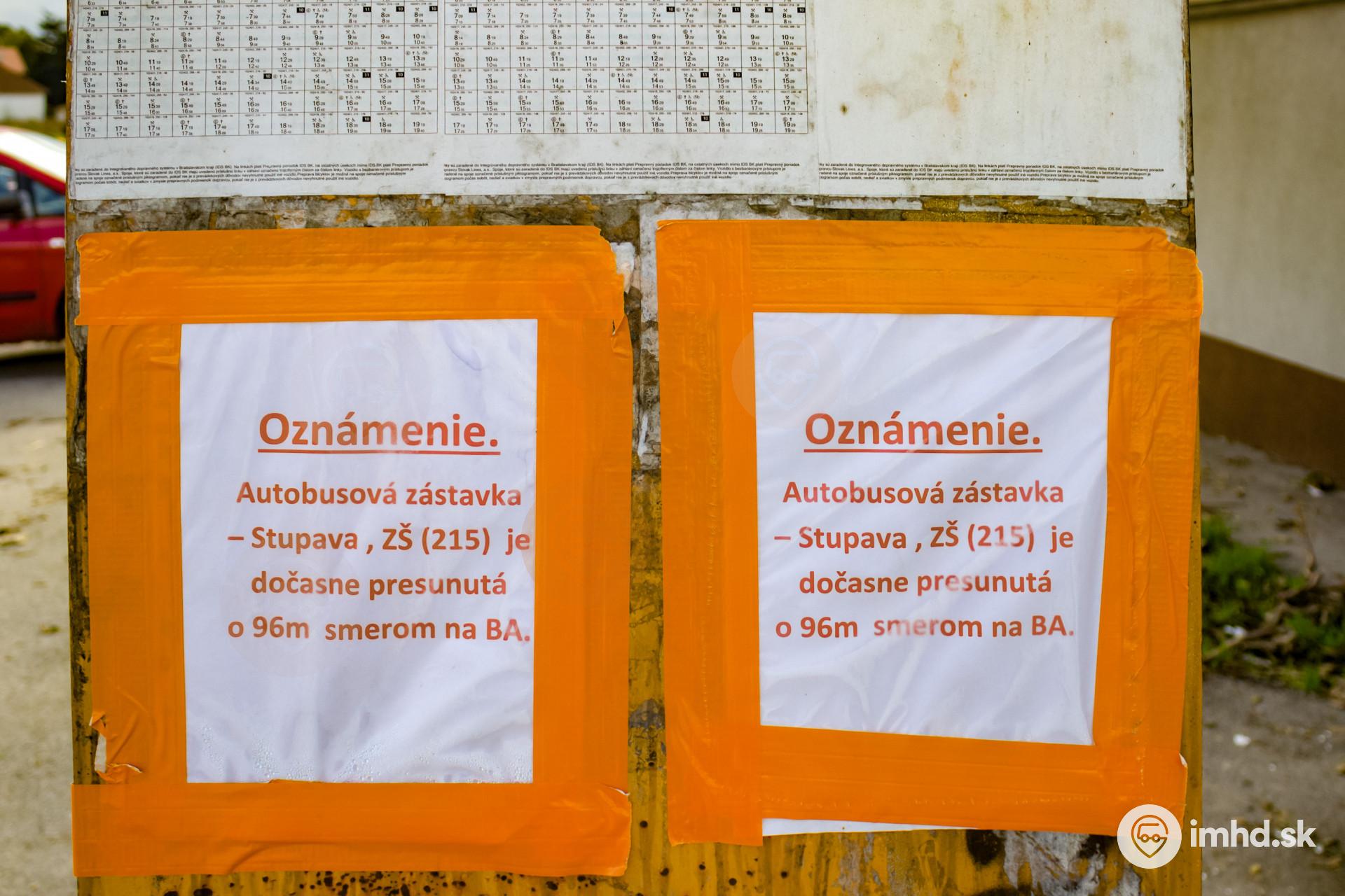 Oznam o presunutí zastávky na spôsob Slovak Lines.