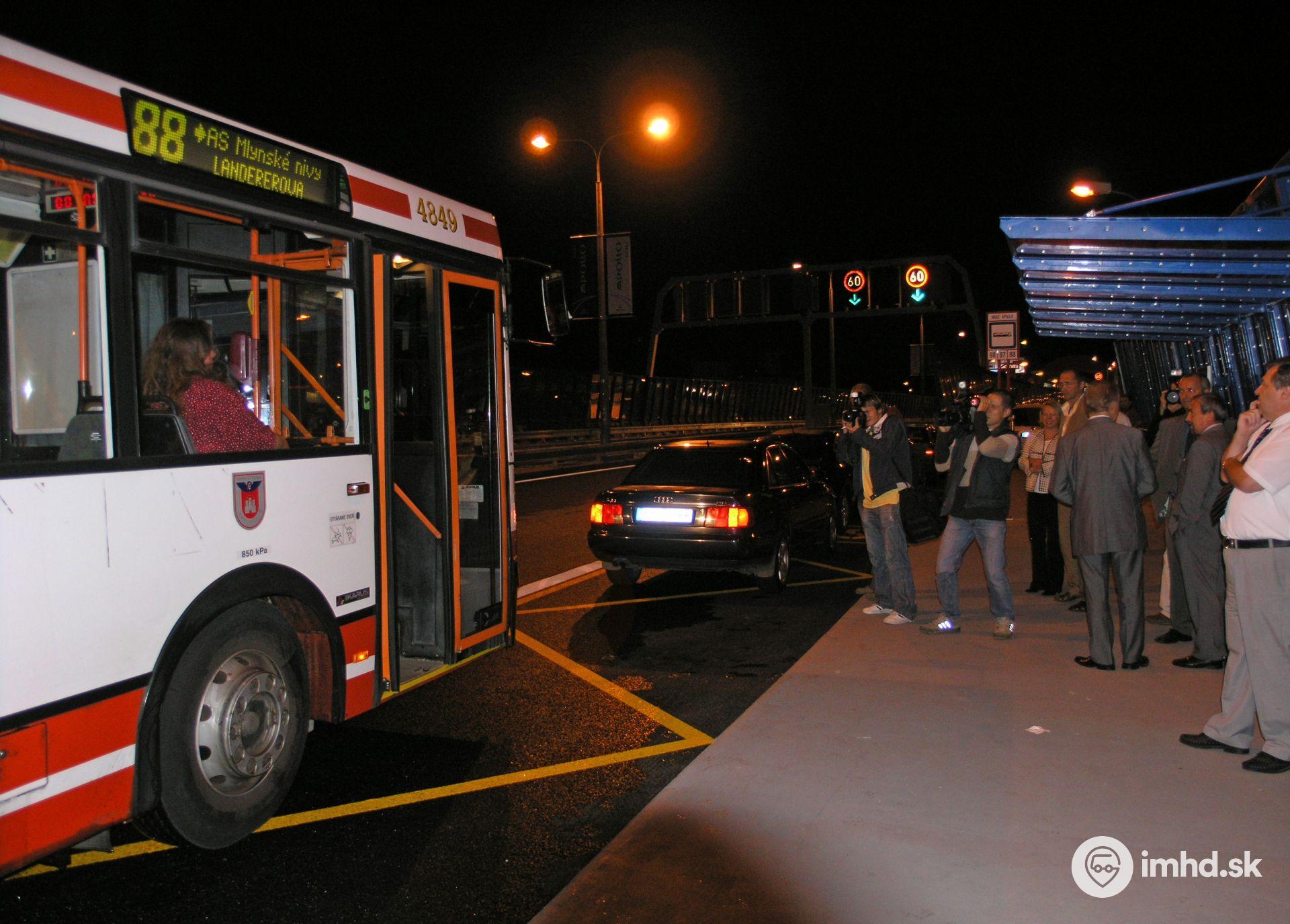 #4849 a (sprava) riaditeľ rezortu prevádzky a techniky DPB Bronislav Weigl, námestník primátora Karol Kolada, generálny riaditeľ DPB Ján Zachar a primátor Andrej Ďurkovský na Moste Apollo.