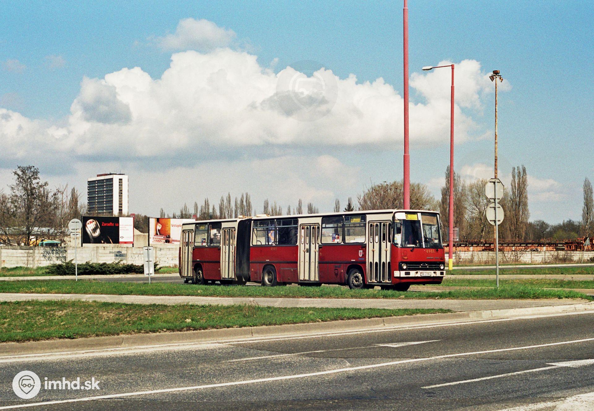 Ikarus 280 #4948 na výjazde z vozovne Petržalka na Einsteinovej ulici.