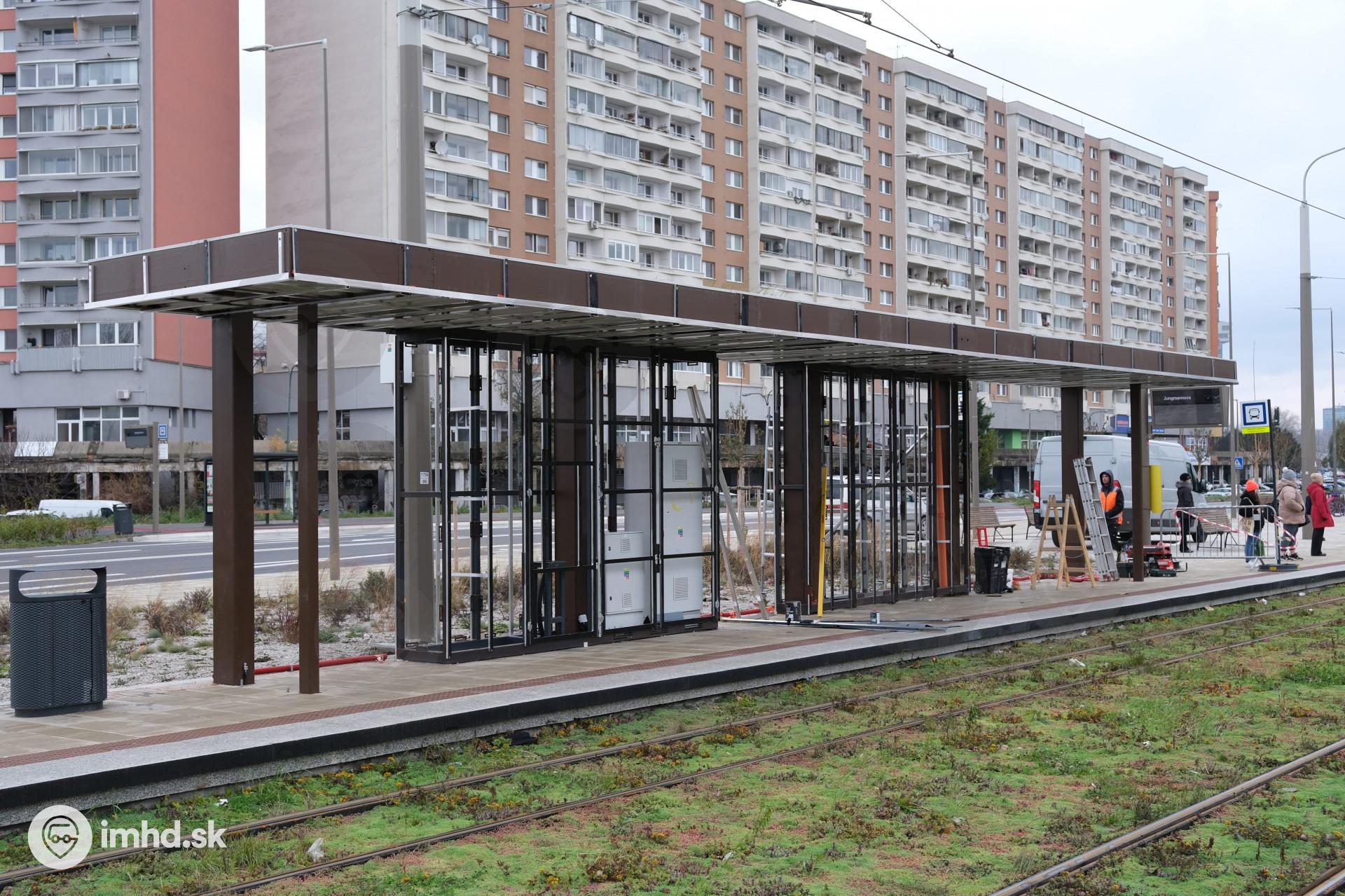 Oplášťovanie prístreška na zastávke Jungmannova