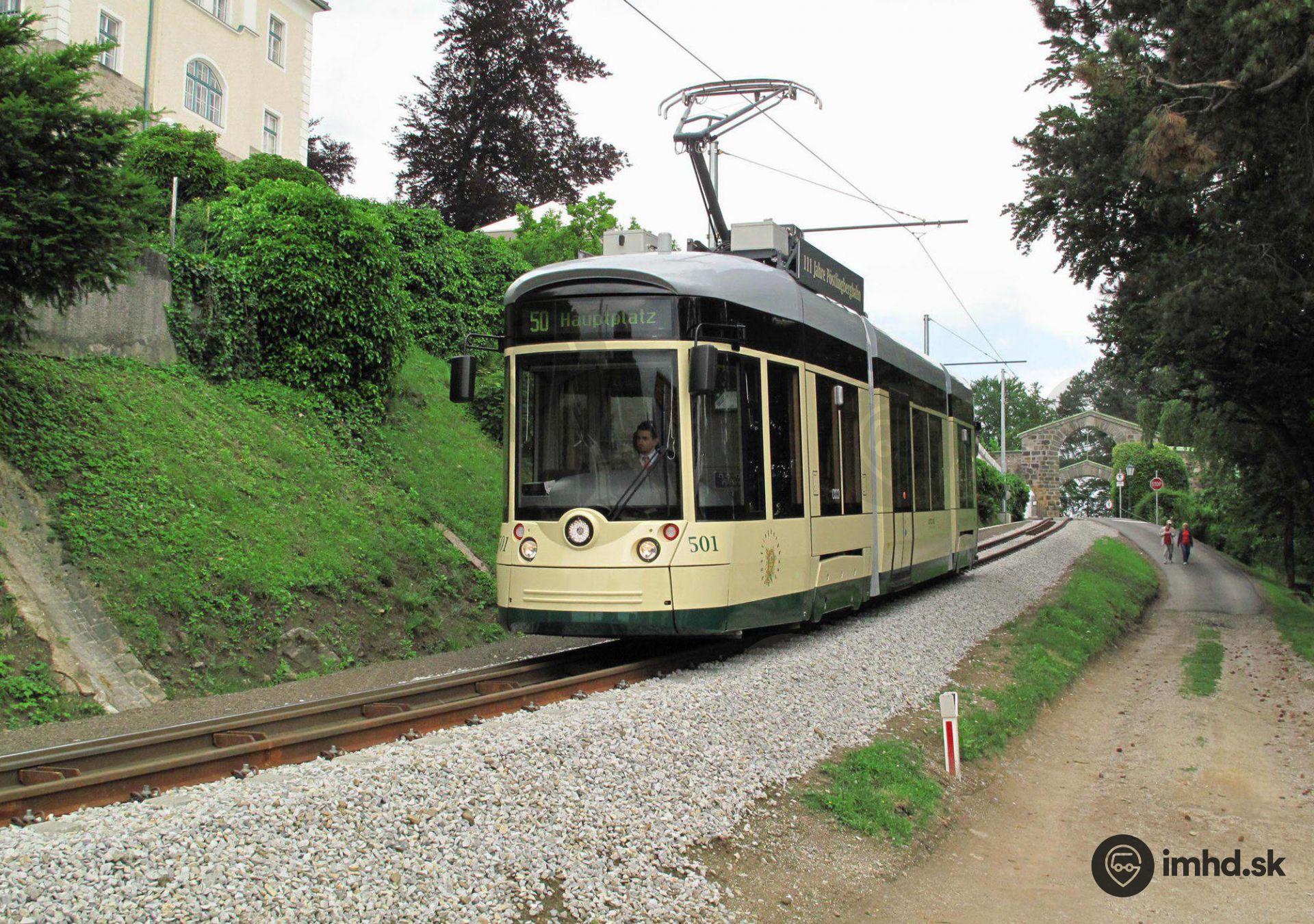Zrekonštruovaná trať Pöstlingbergbahn v Linzi (13.8.2009)