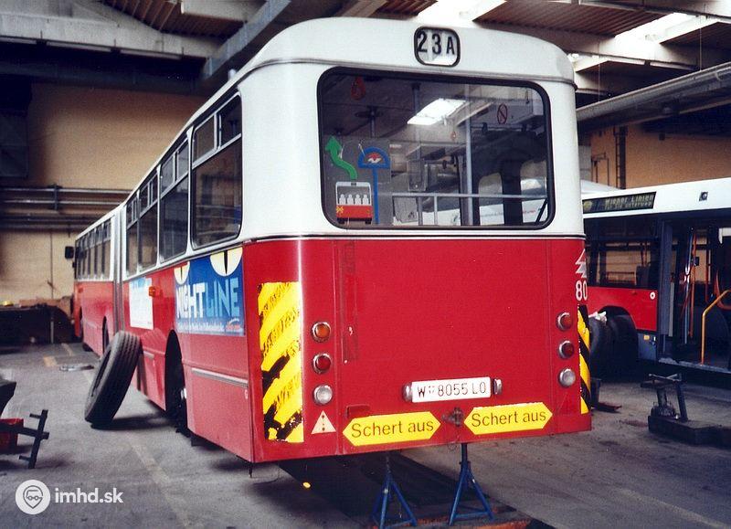 Kĺbový autobus Gräf und Steyr GU 240 M18 #8055 z roku 1991 v hale Ústredných dielní.