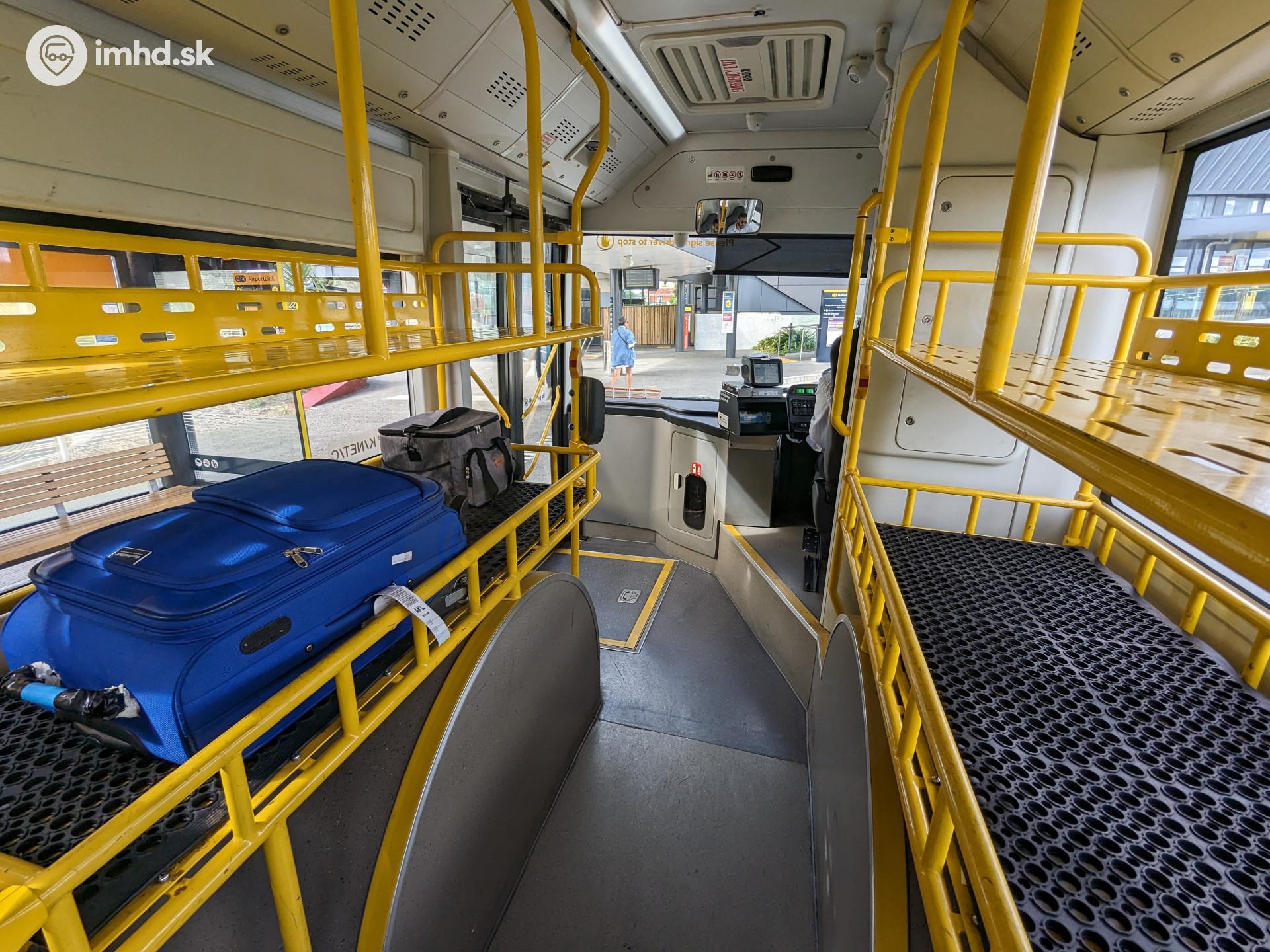 Regále na batožinu v elektrobuse na letisko sú čiastočne vybavené gumenou podložkou.