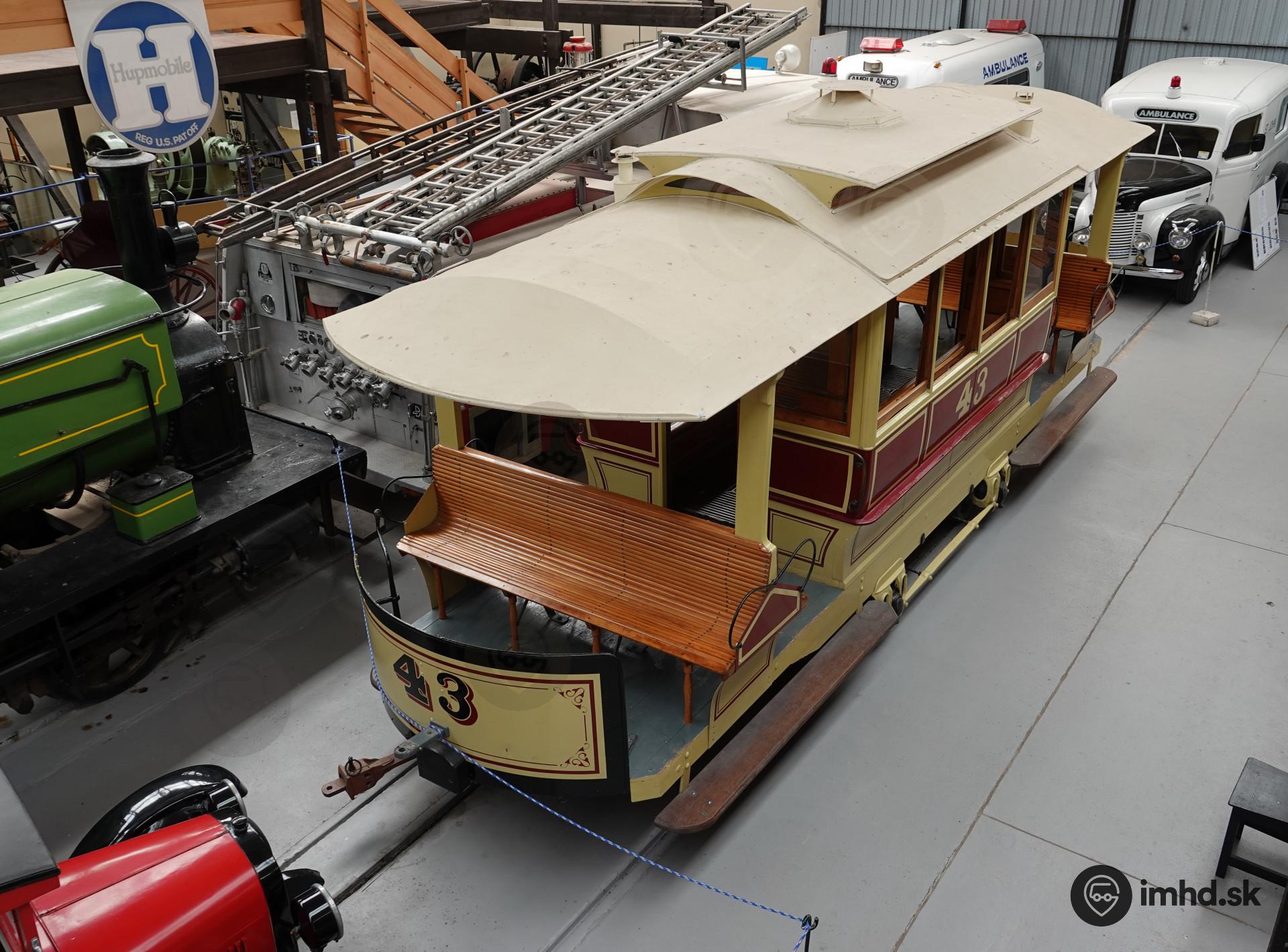 | Vozeň #43 bol vyrobený firmou John Stephenson and Company v New Yorku. Zrekonštruovaný je do podoby po predĺžení plošín na oboch stranách vozidla. | |