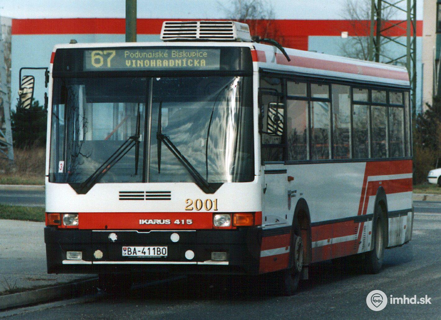 Ikarus 415 #2001 na linke 67 pri vozovni Jurajov dvor.
