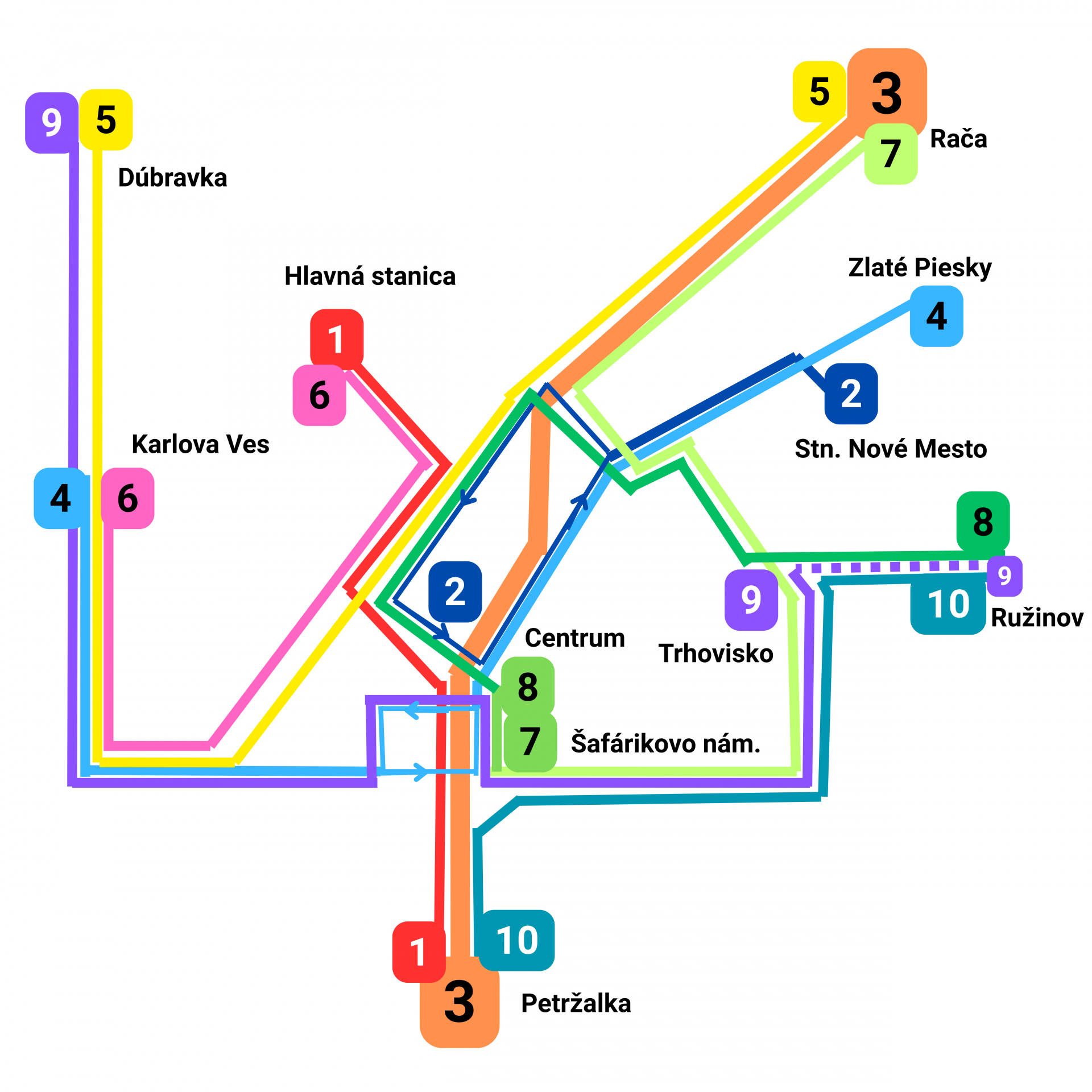 Upravený návrh linkového vedenia s L2 cez Centrum (namiesto Hlavnej stanice).