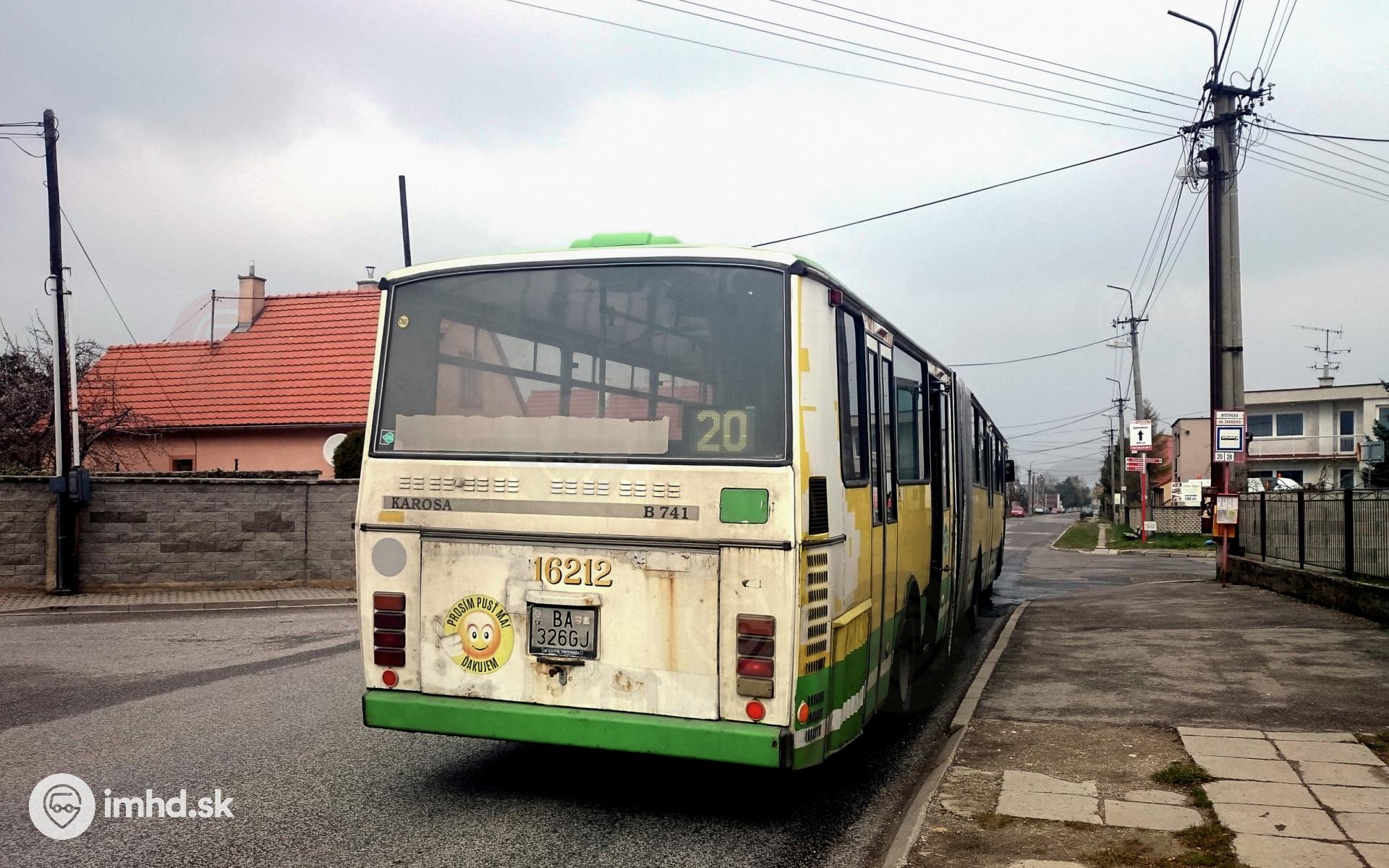 Karosa B 741 #1621 na linke 20/7, kde nedodržala garantovanú nízkopodlažnosť. Vozidlo bolo po odfotení v premávke ešte jeden mesiac