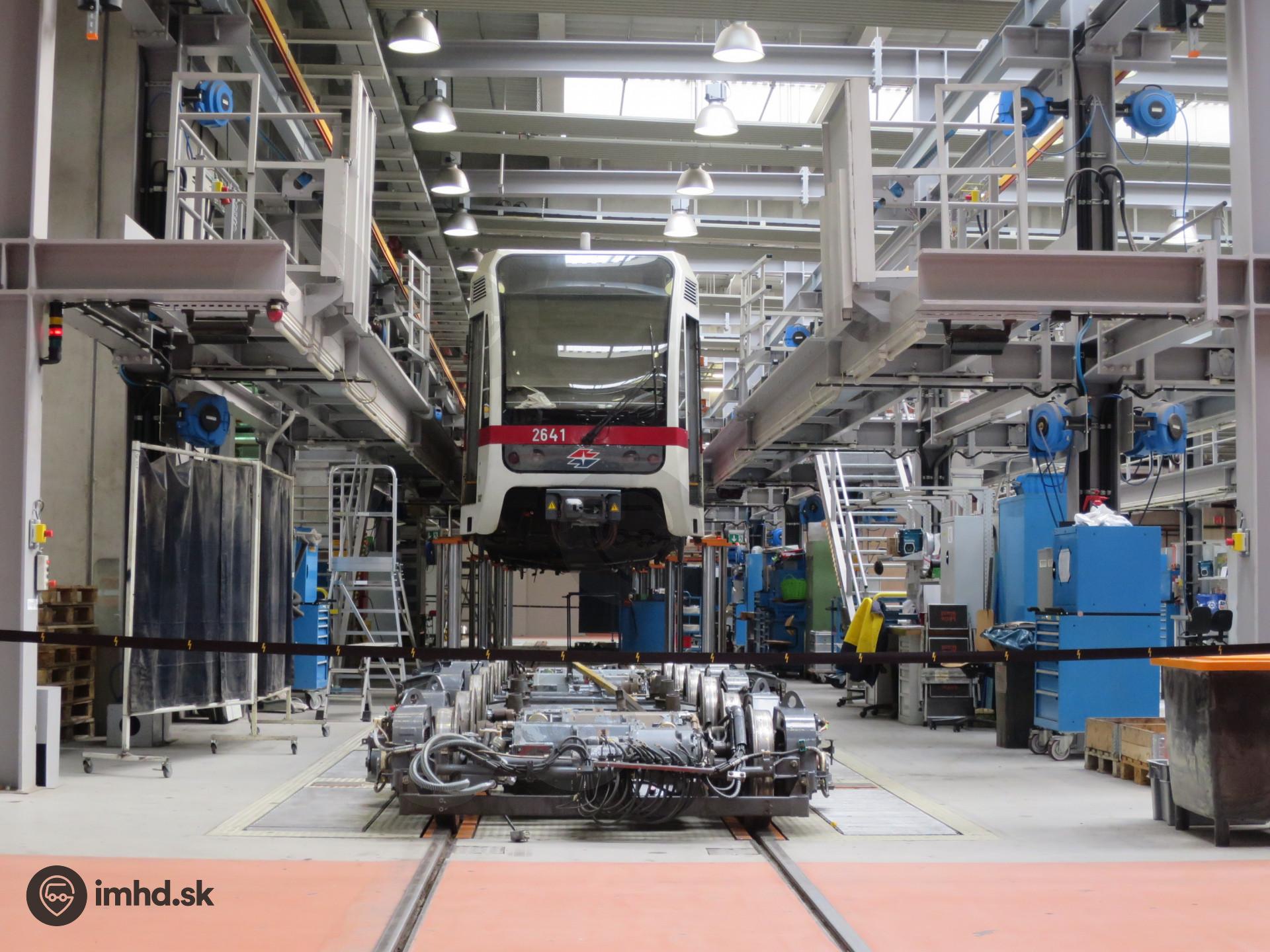Vozeň metra linky U6 na zdvihákoch.