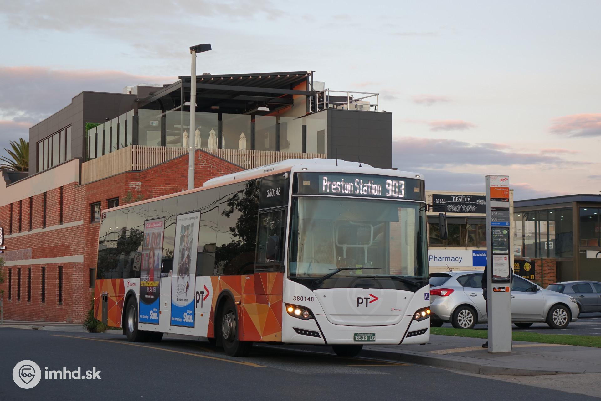 Jednoduchá konečná linky 903 na predmestí Melbourne.