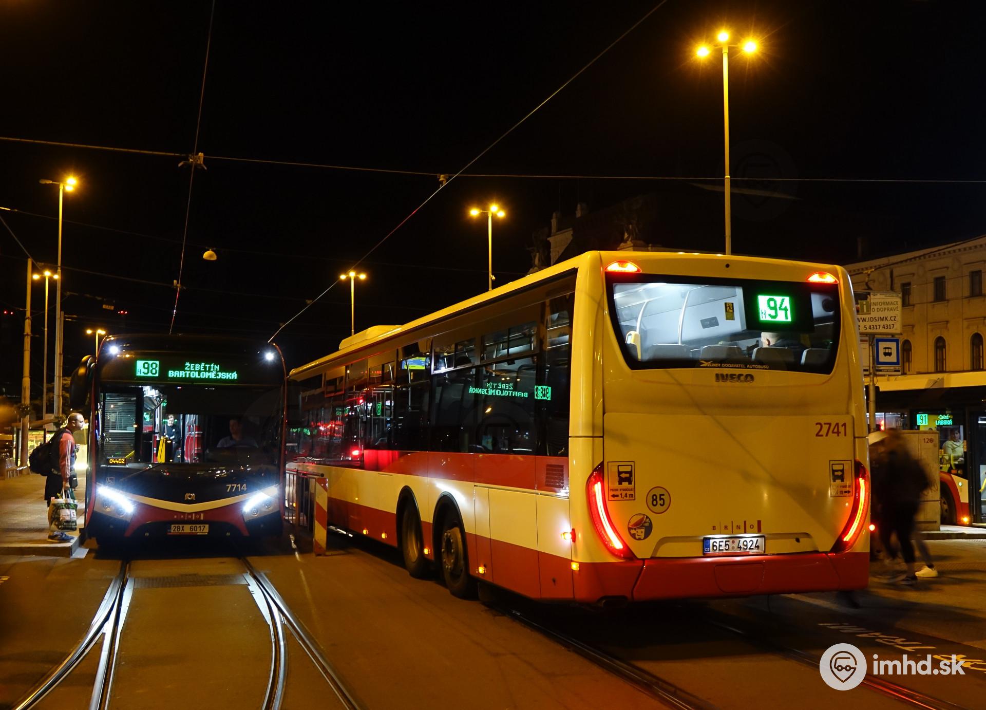 Rozjazd nočných liniek zo zastávky Hlavní nádraží.