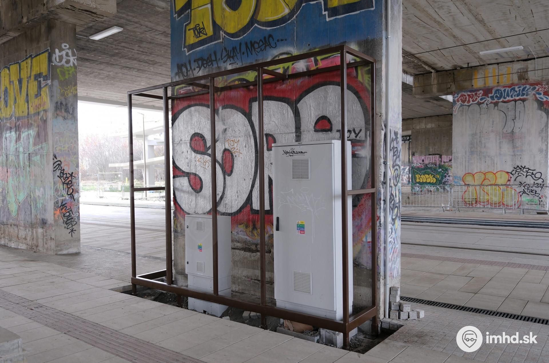 | Rozvádzače na zastávke Južné mesto pred opláštením oceľovej konštrukcie. | |