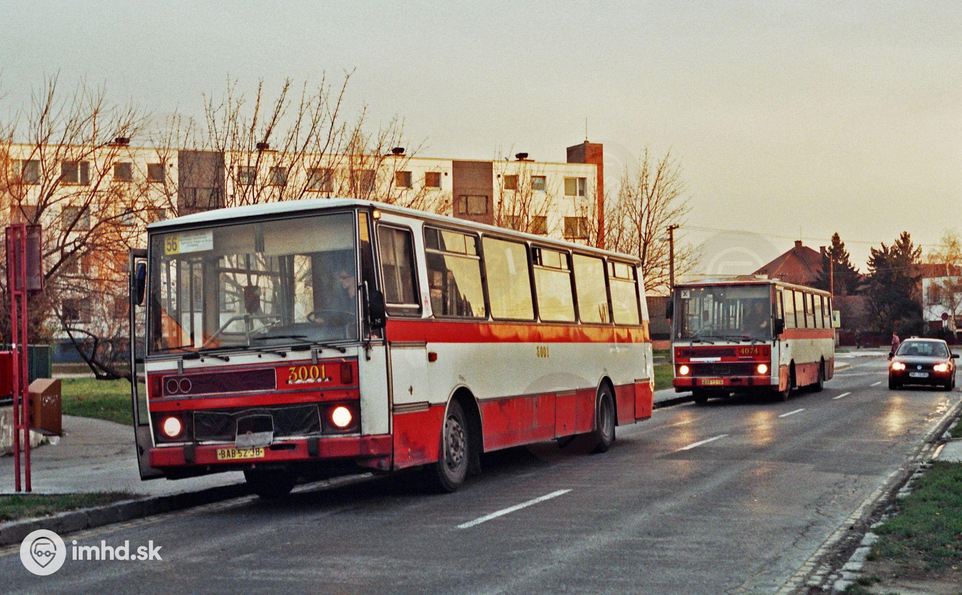 Počas budovania obchvatu vo Vajnoroch premávala linka 56 obojsmerne po Rybničnej ulici - je na nej Karosa B 732 #3001 - a náhradu za zrušenú linku 54 zabezpečovala linka X54, na ktorej je #4074.