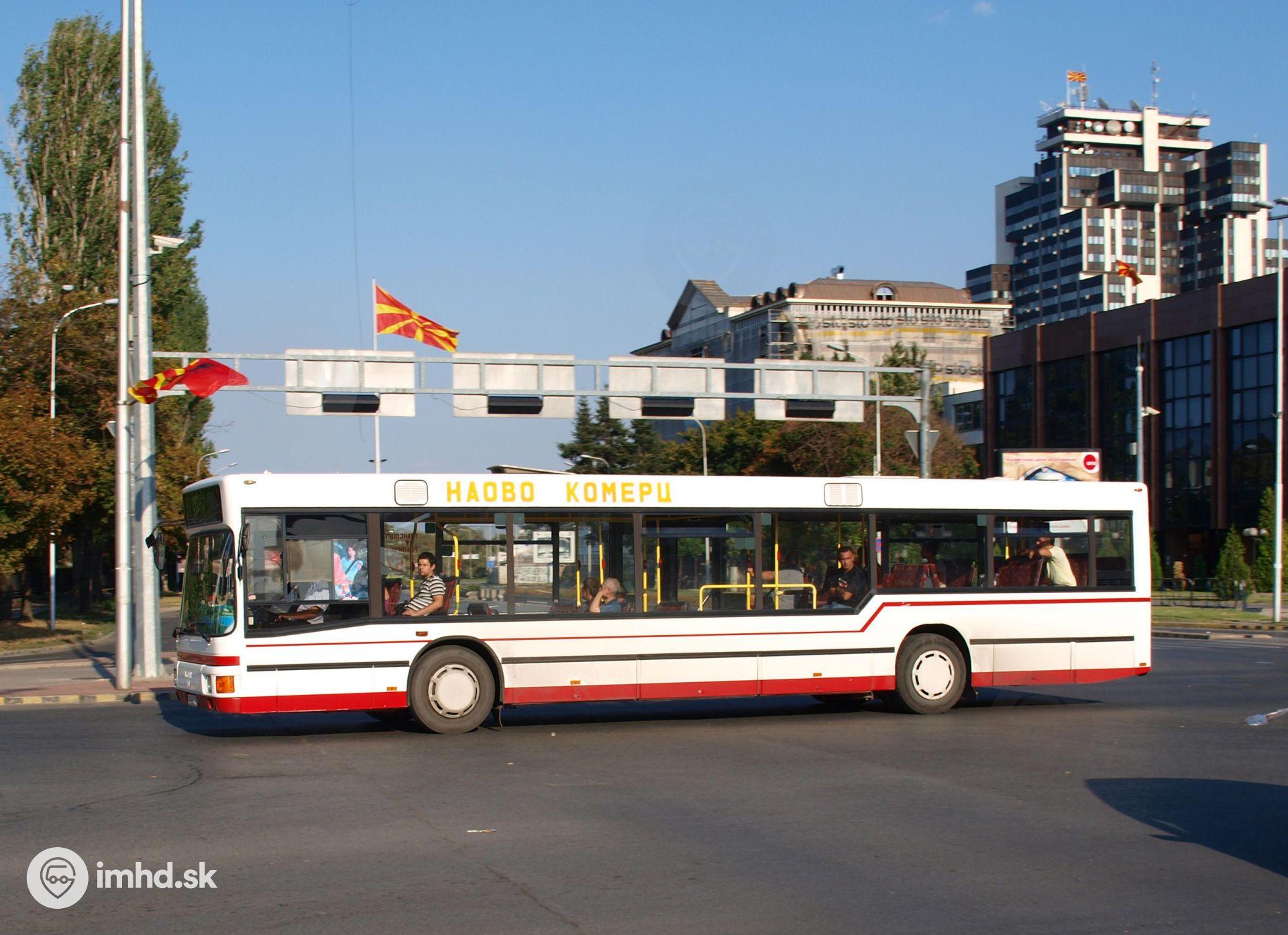 MAN NL222, v pozadí výšková budova macedónskeho telerozhlasu.