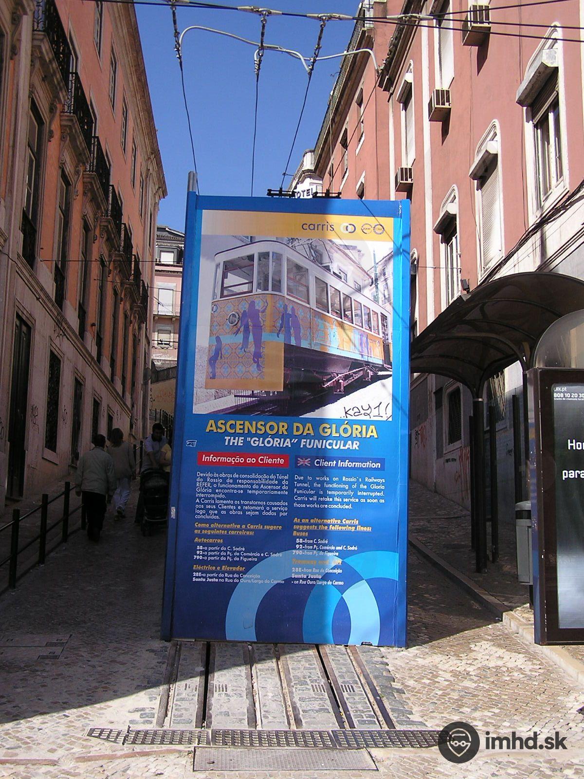 The Glória funicular which connects Restauradores with the Bairro Alto. The funicular is temporaly out of service due to reconstruction works in the railway tunnel, which runs bellow it.