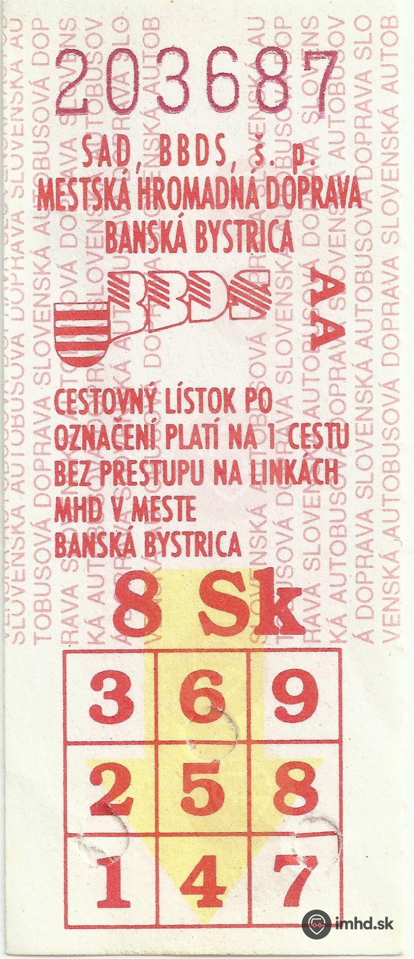 Cestovný lístok 8 Sk
