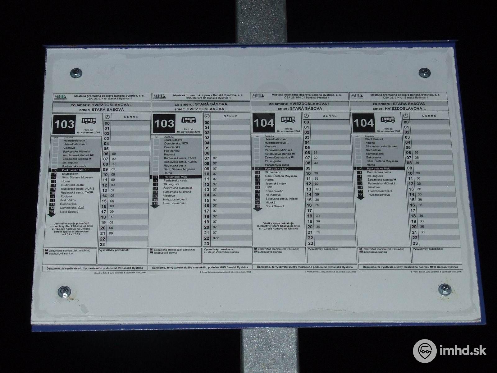 Vývesky liniek dopravcu MHD BB a.s.