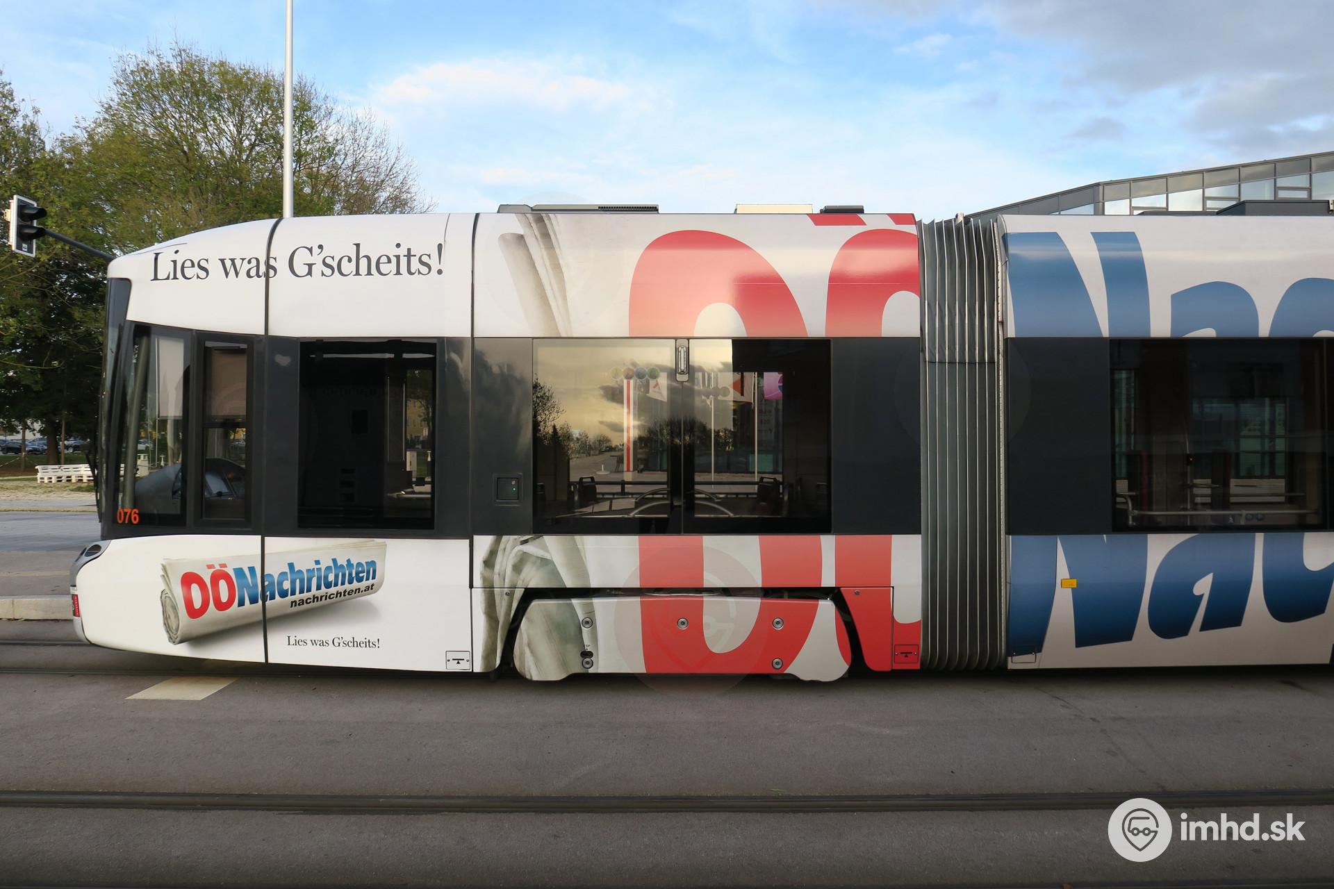 Flexity Outlook 2 #076 s reklamou, ktorá neprekrýva okná vozidla.