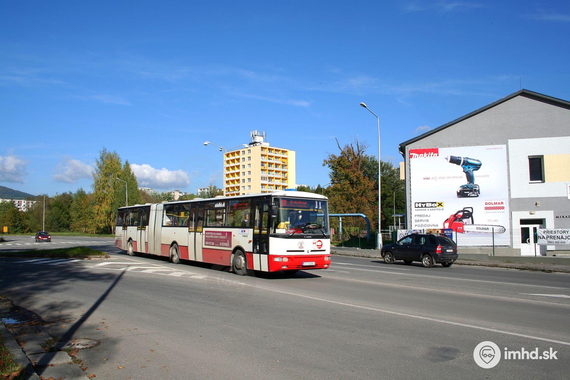 Karosa B 961E #ZV-309BI na linke 90 prichádza rovno od Medeného Hámru a napája sa na svoju pôvodnú trasu.