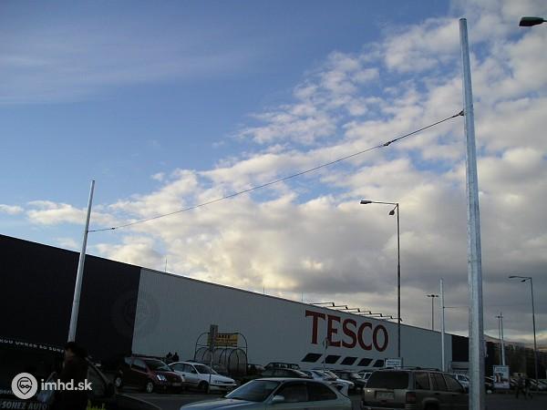 Výstavba trolejbusovej trate k Tescu: Jeden z prvých prevesov, ktorý bol natiahnutý.