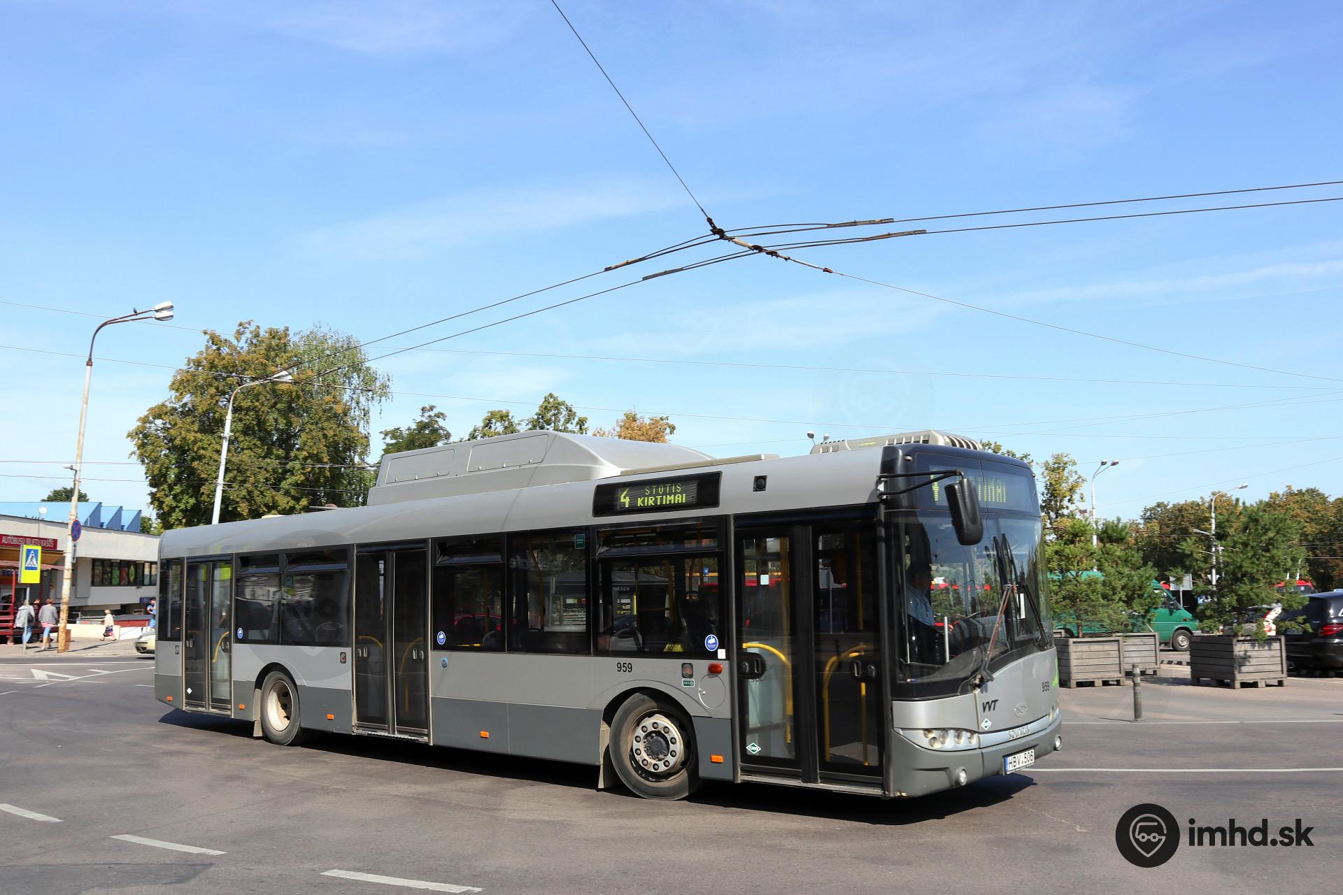 Solaris Urbino 12 III CNG #959 sa otáča na námestí pred železničnou stanicou.