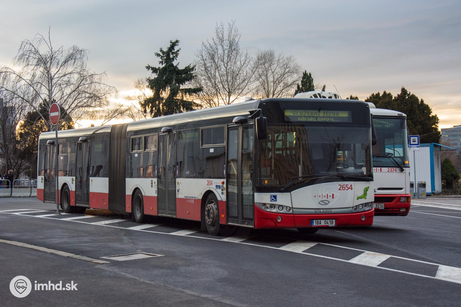 Solaris a Karosa v obratisku pred náhradnou železničnou stanicou Dolní nádraží.