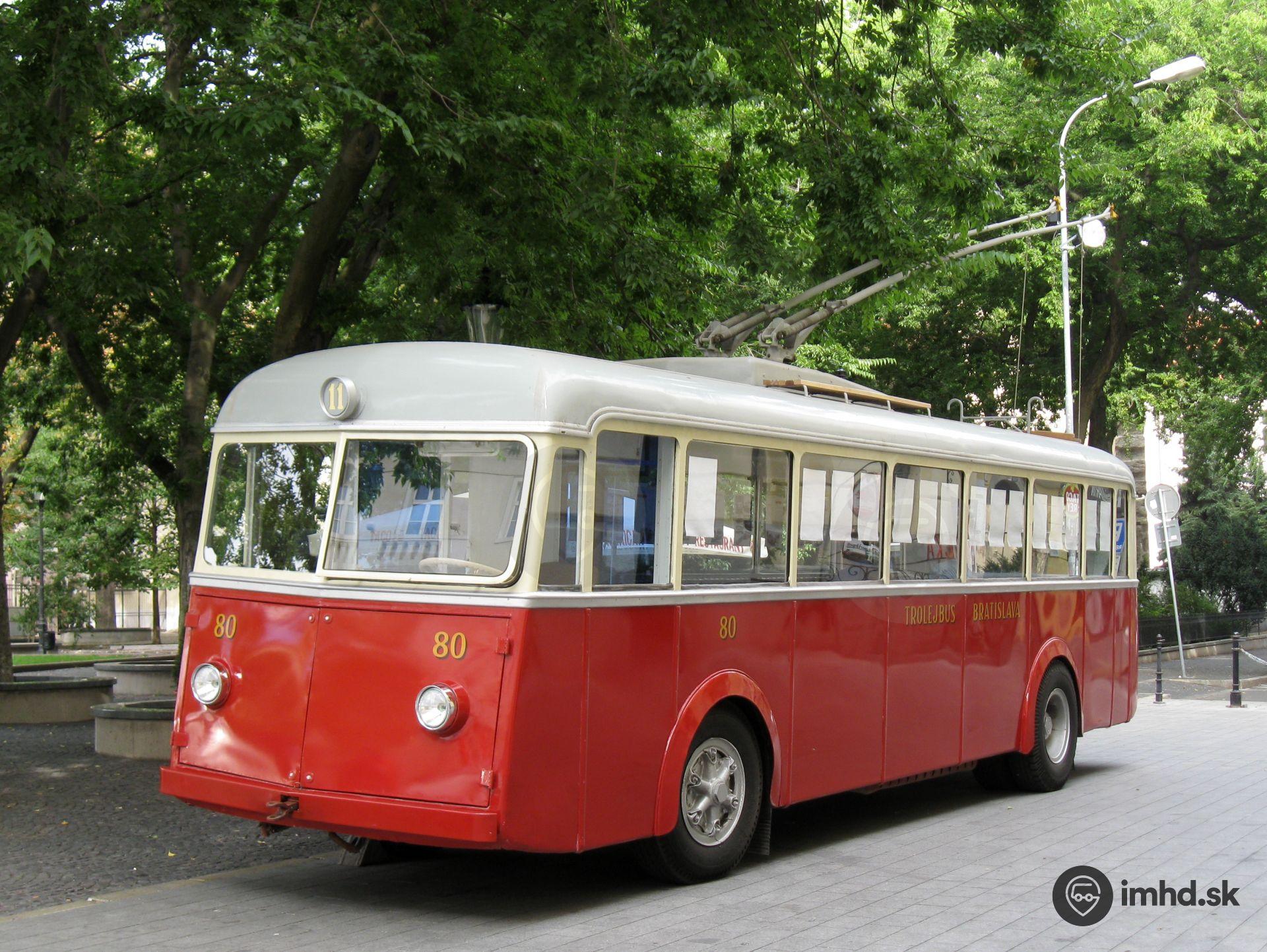 Historický trolejbus FBW - Oerlikon #80 na bývalej konečnej trolejbusovej linky 11 na Palackého ulici. Trolejbusy tadiaľto premávali v rokoch 1941 - 1973.