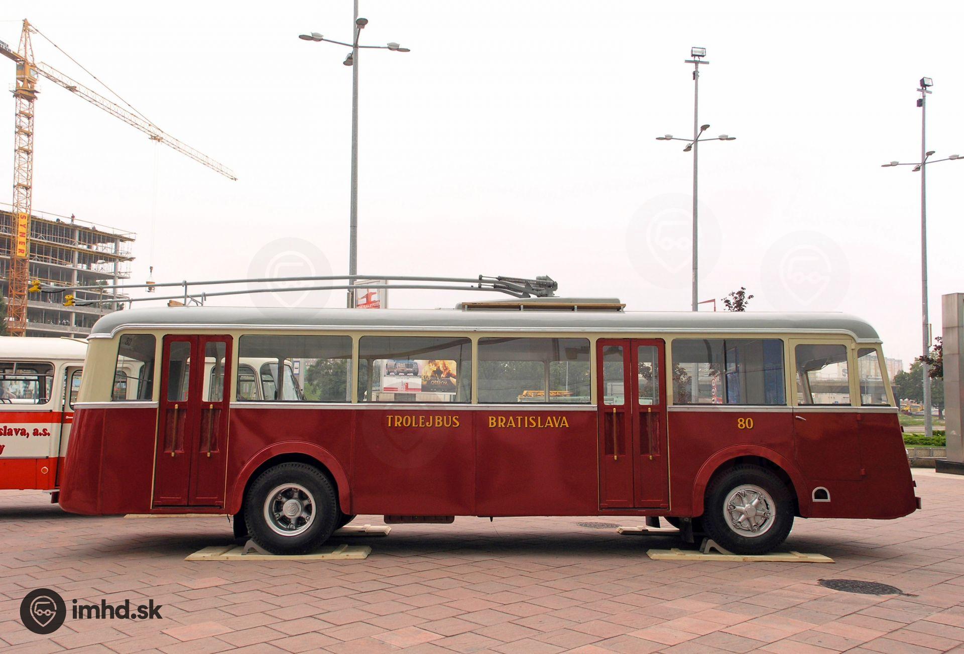 Bočný pohľad na trolejbus FBW - Oerlikon #80 z roku 1945.