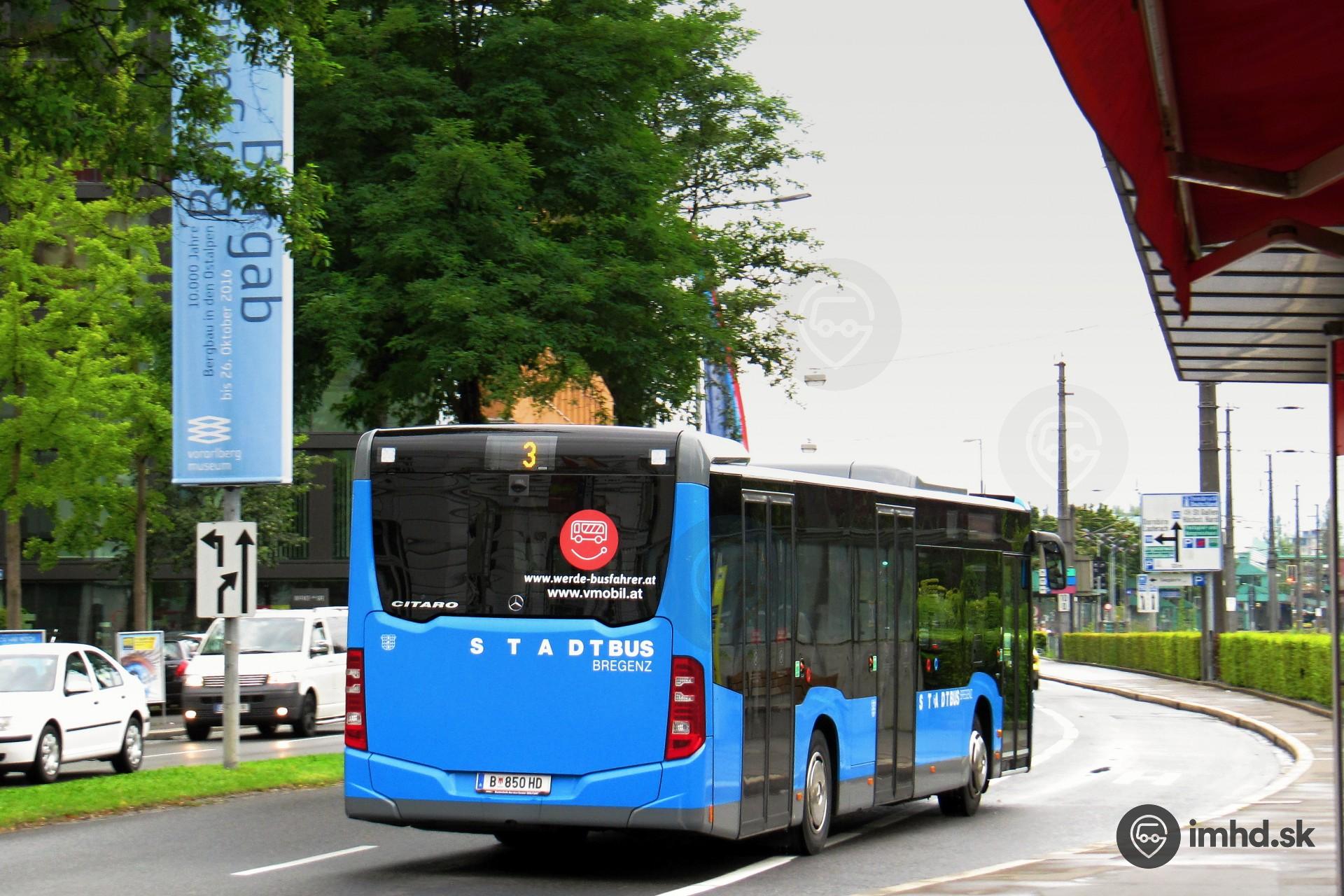 Mercedes-Benz Citaro C2 #B 850 HD na ceste k železničnej stanici, odkiaľ pokračuje na linke 3.