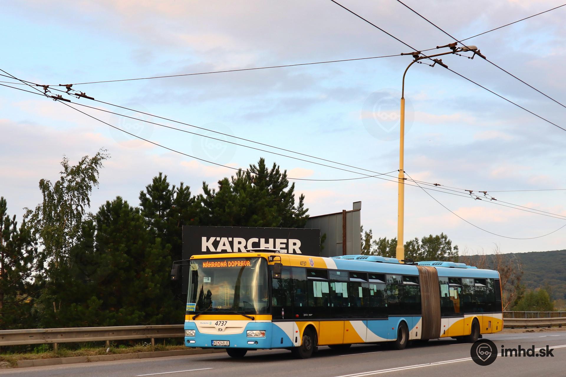 | #4737 ako spoj kyvadlovej linky B na ceste zo zastávky Trolejbusová na zastávku Okresný úrad. | |