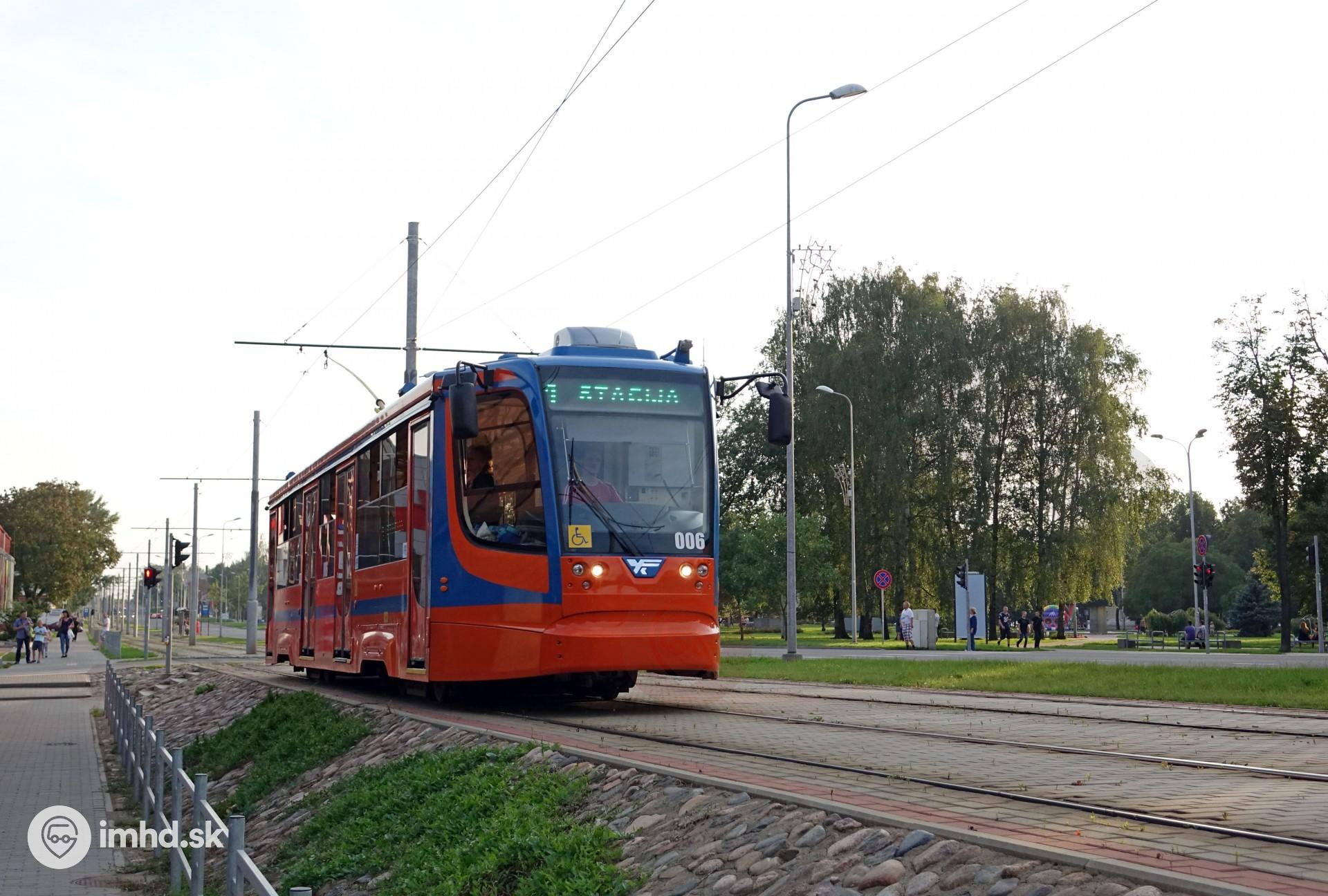 Električka KTM-23 (71-623-01) vyrobená v roku 2014 smeruje od železničnej stanice, aj keď elektronická tabuľa tomu nenasvedčuje.