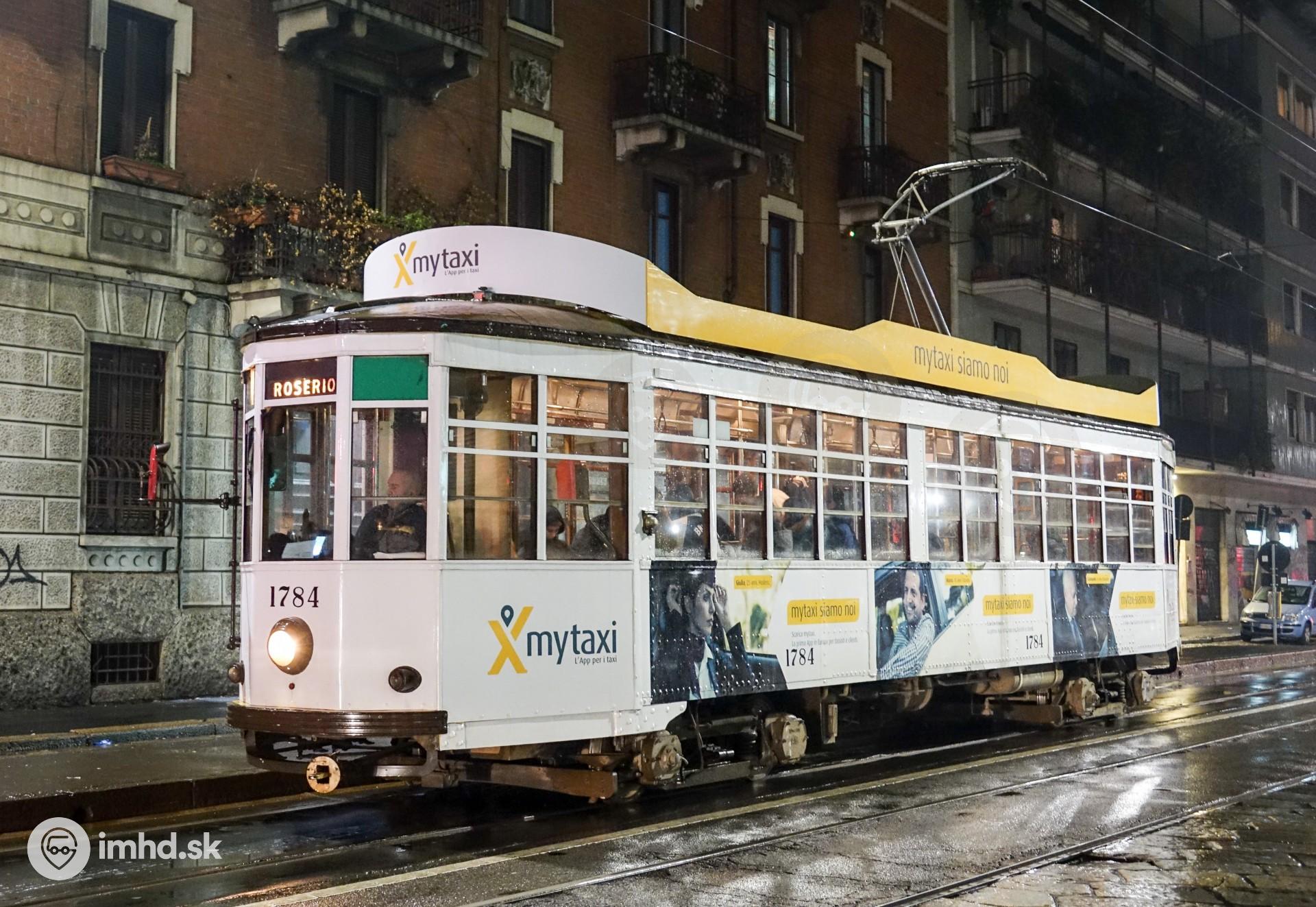 Električka Ventotto od firmy Officine Meccaniche (OM) propaguje taxíkovú aplikáciu.