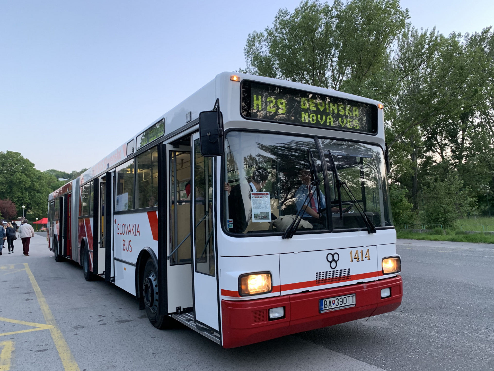 TAM 272 A 180 M #1414 opúšťa zastávku Hrad Devín a vydáva sa na podvečernú jazdu do mesta.
