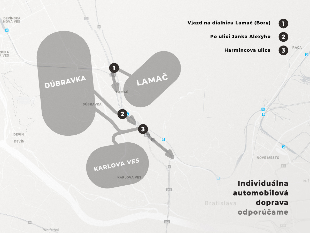 Odporúčané trasy pre automobilovú dopravu počas prvej etapy modernizácie Karlovesko-dúbravskej radiály.