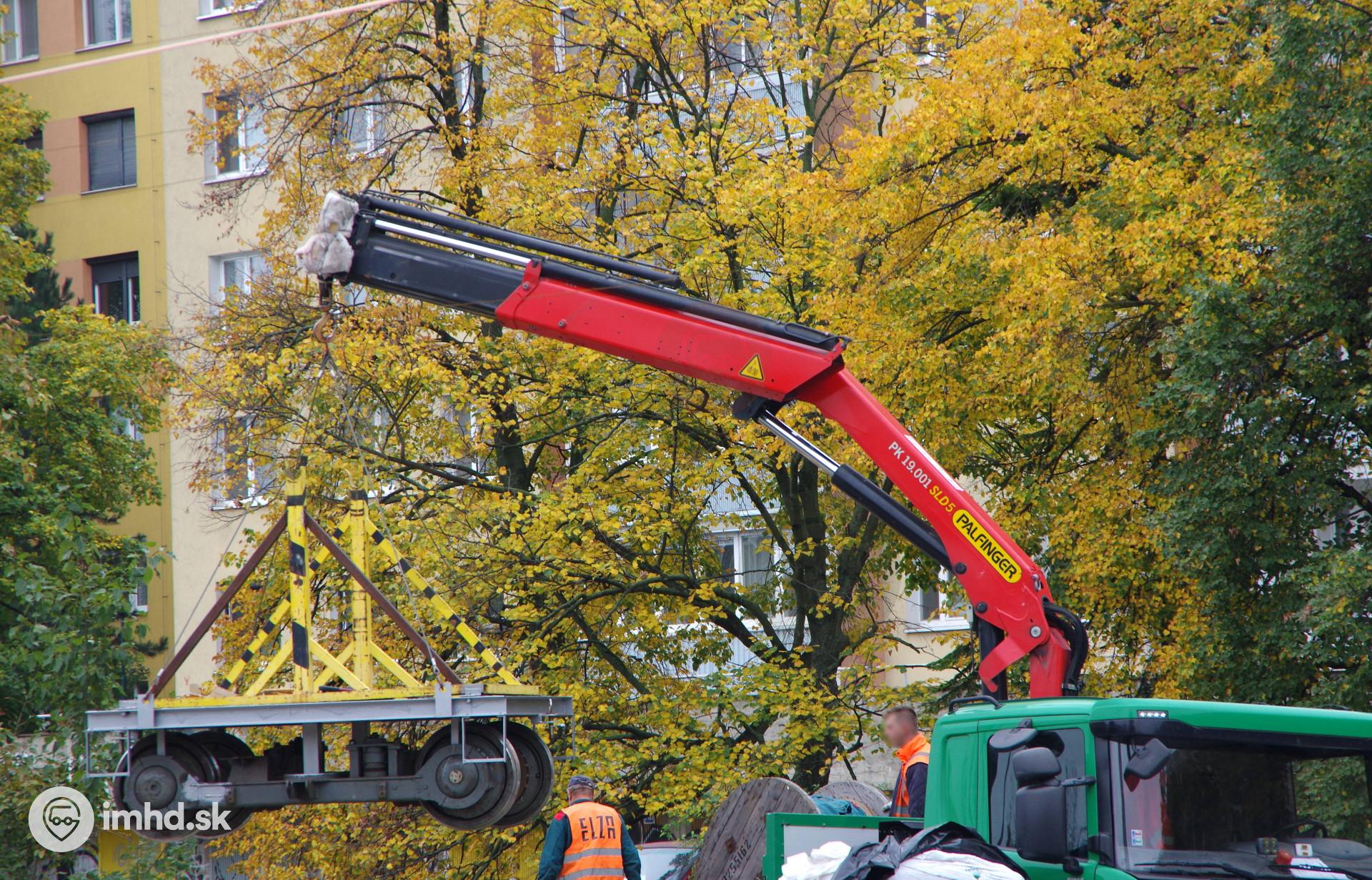Vešanie trolejového vedenia a výstavba zastávok v Karlovej Vsi (18.10.2019)