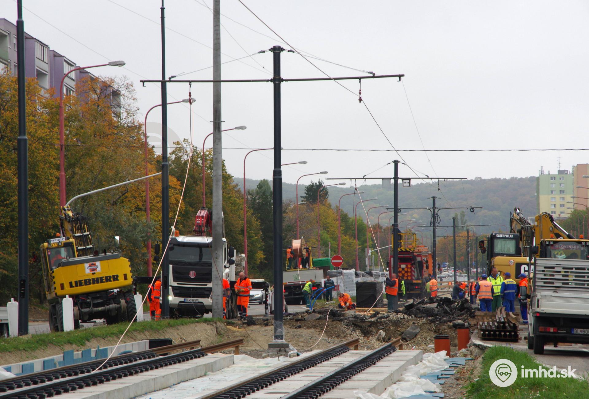 Vešanie trolejového vedenia a výstavba zastávok v Karlovej Vsi (18.10.2019)