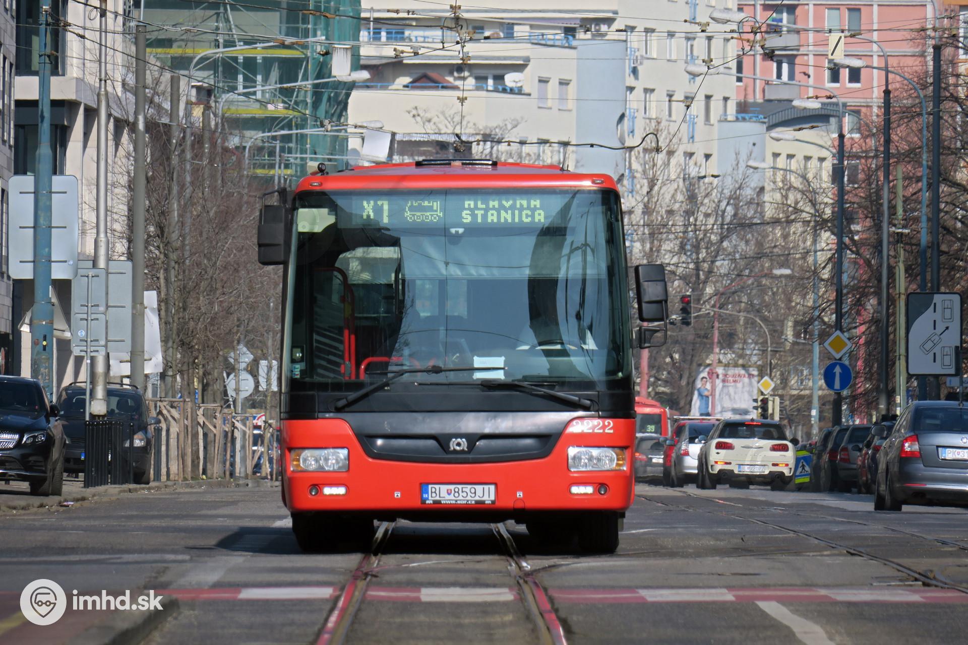 #2222 vykonáva náhradnú dopravu za električky v trase Hlavná stanica - Šancová - Blumentál - Nám. Slobody - Hodžovo nám. - Hlavná stanica.