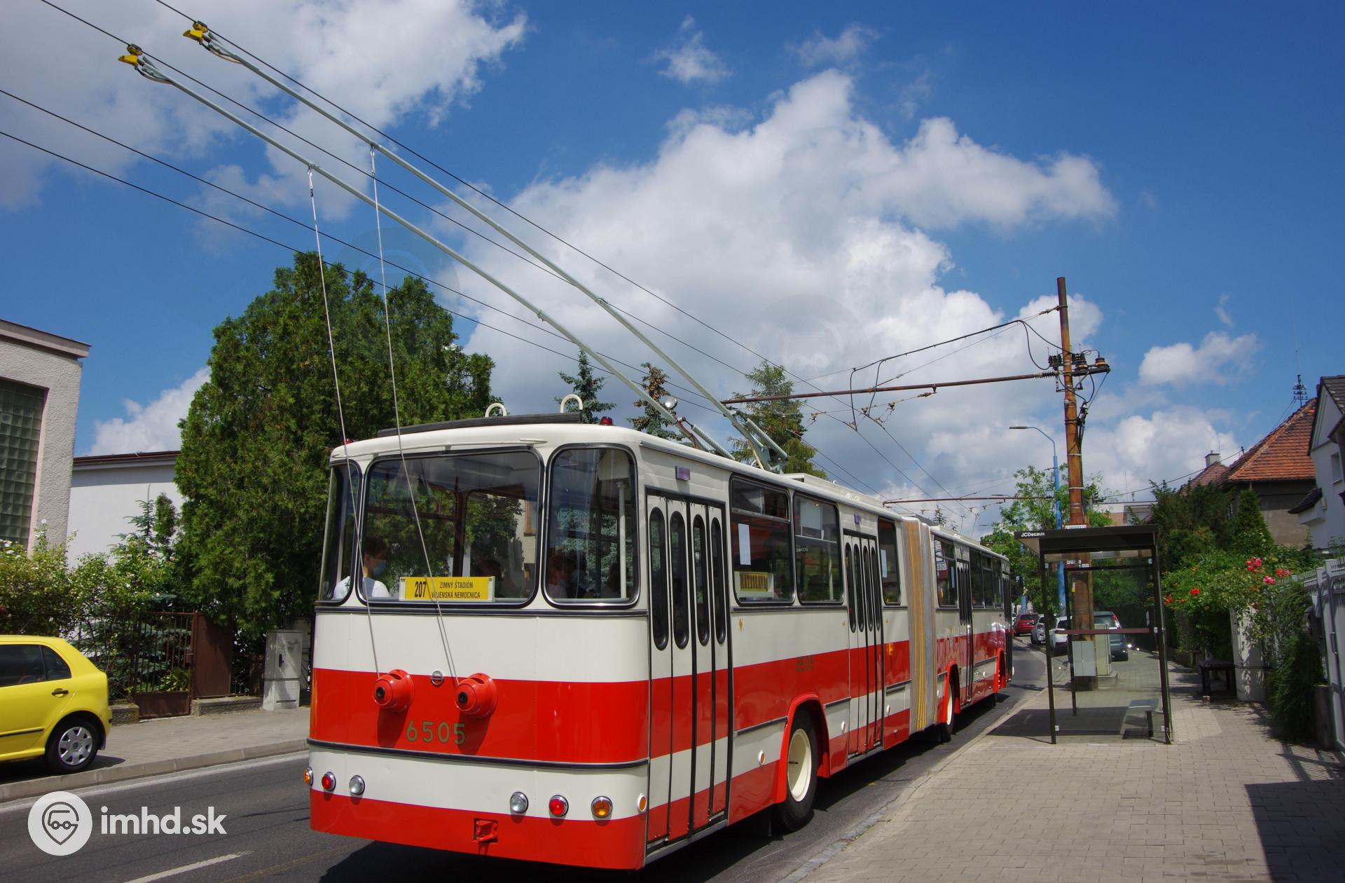 Historický trolejbus Škoda Sanos na linke 207 počas Bratislavských mestských dní 2021