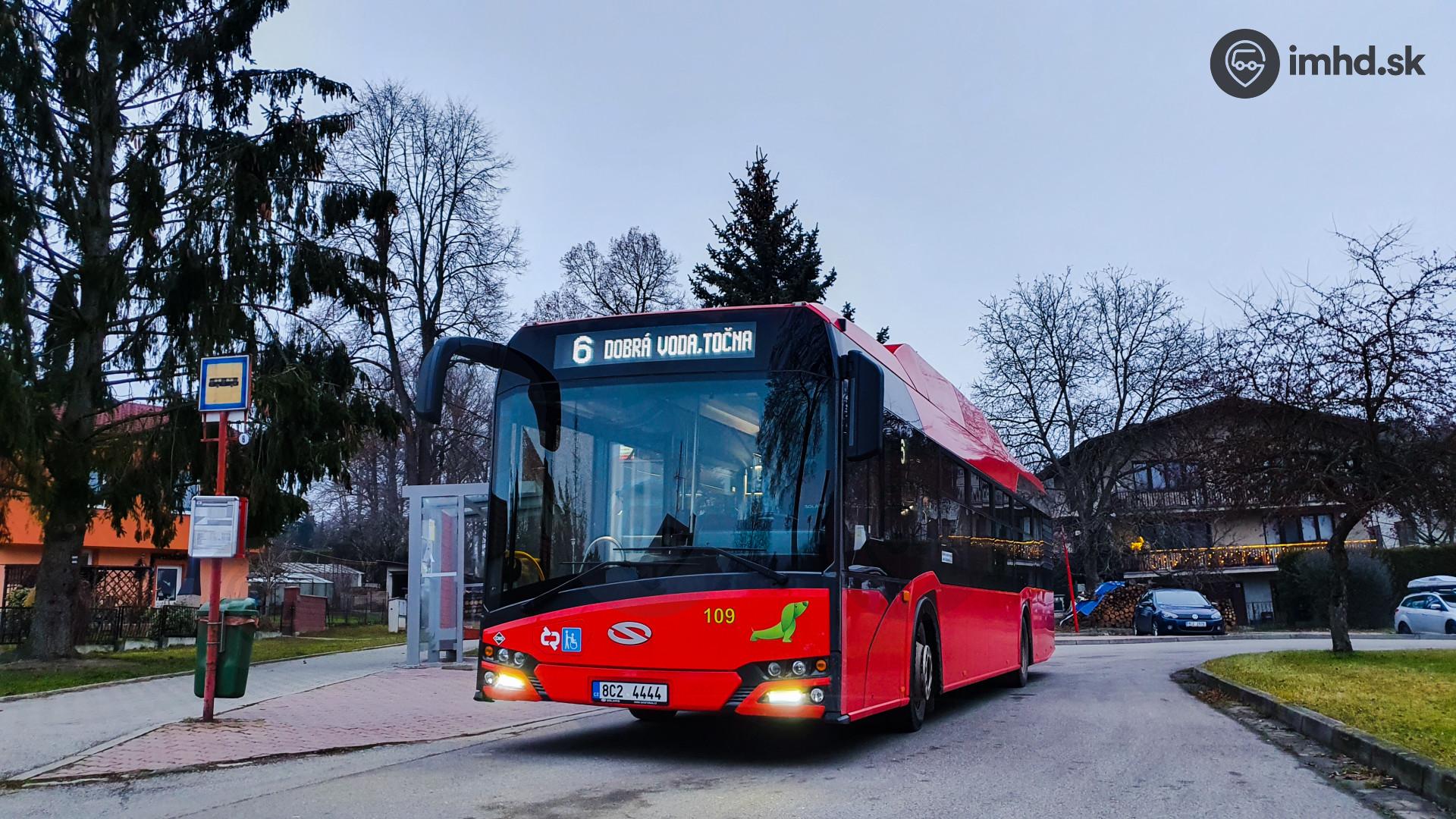 V roku 2018 kúpil DPMČB 24 autobusov Solaris New Urbino na stlačený zemný plyn. Jeden z devätnástich "kraťasov" pauzuje v obci Hrdějovice počas čerpania bezpečnostnej prestávky na linke 6.