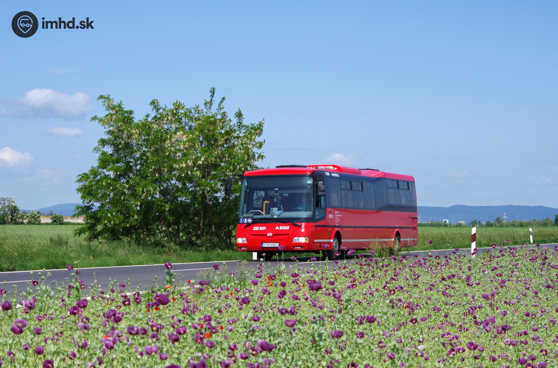 #8560 ide okolo makového poľa už s vypnutými displejmi na náhradnú konečnú Miloslavov, Škola.