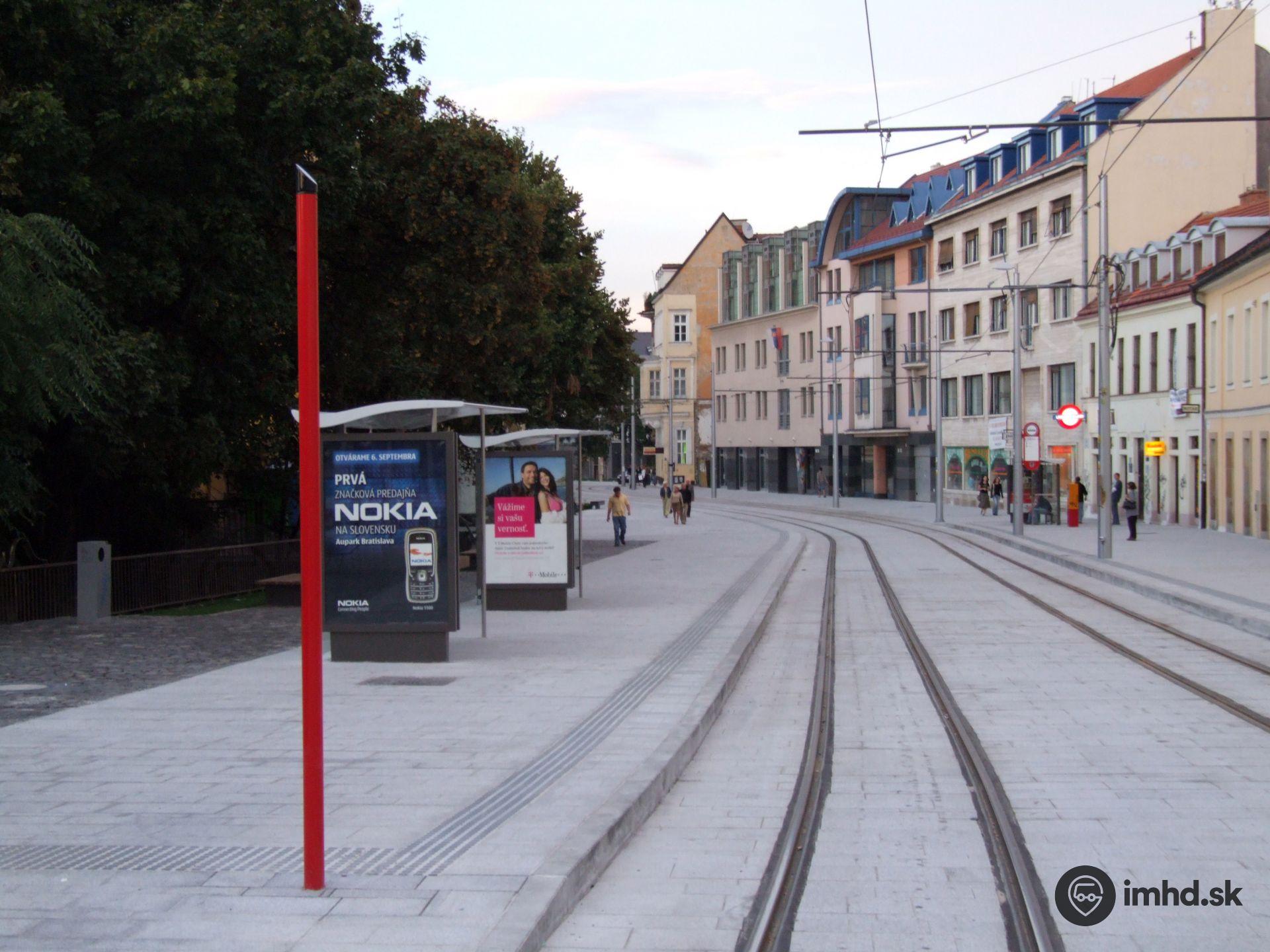 Nový označník zastávky Kapucínska ktosi ukradol, a tak električky zastavovali len pri tyči...