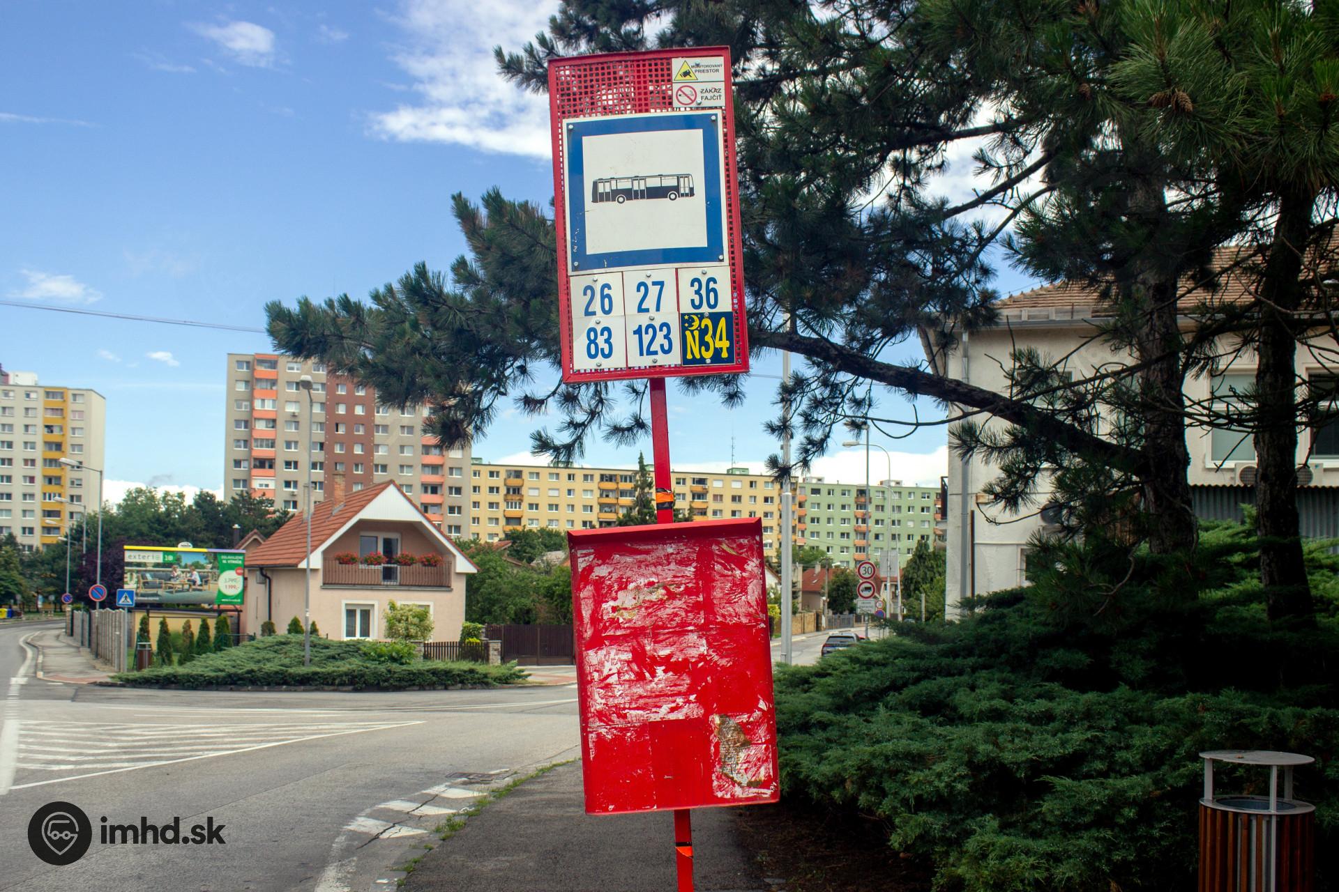 Dočasný označník zastávky Žatevná.