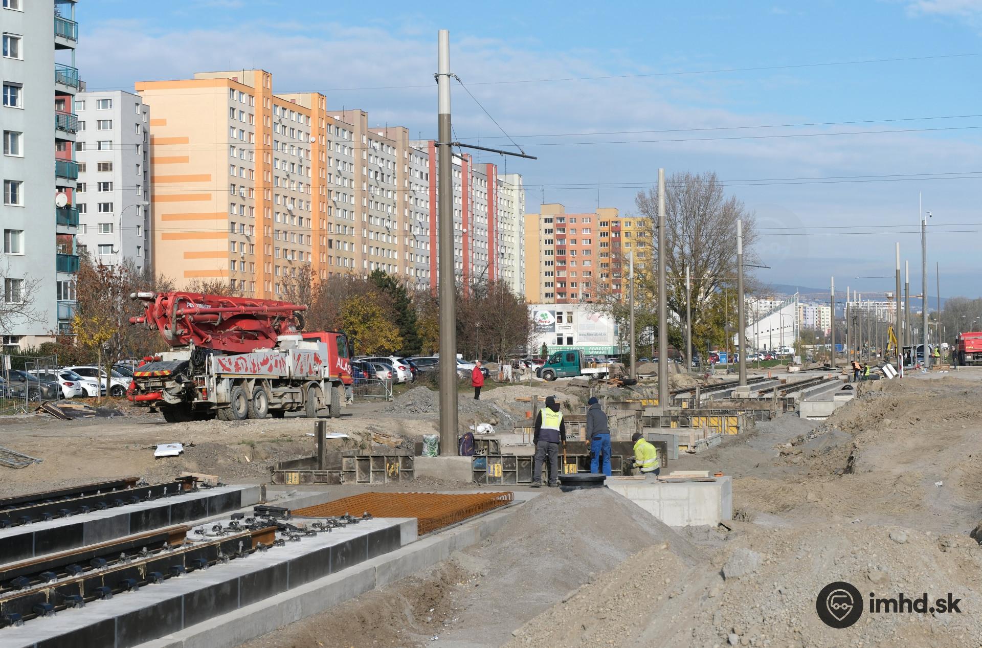 Budovanie trate v mieste bývalej protitankovej steny.