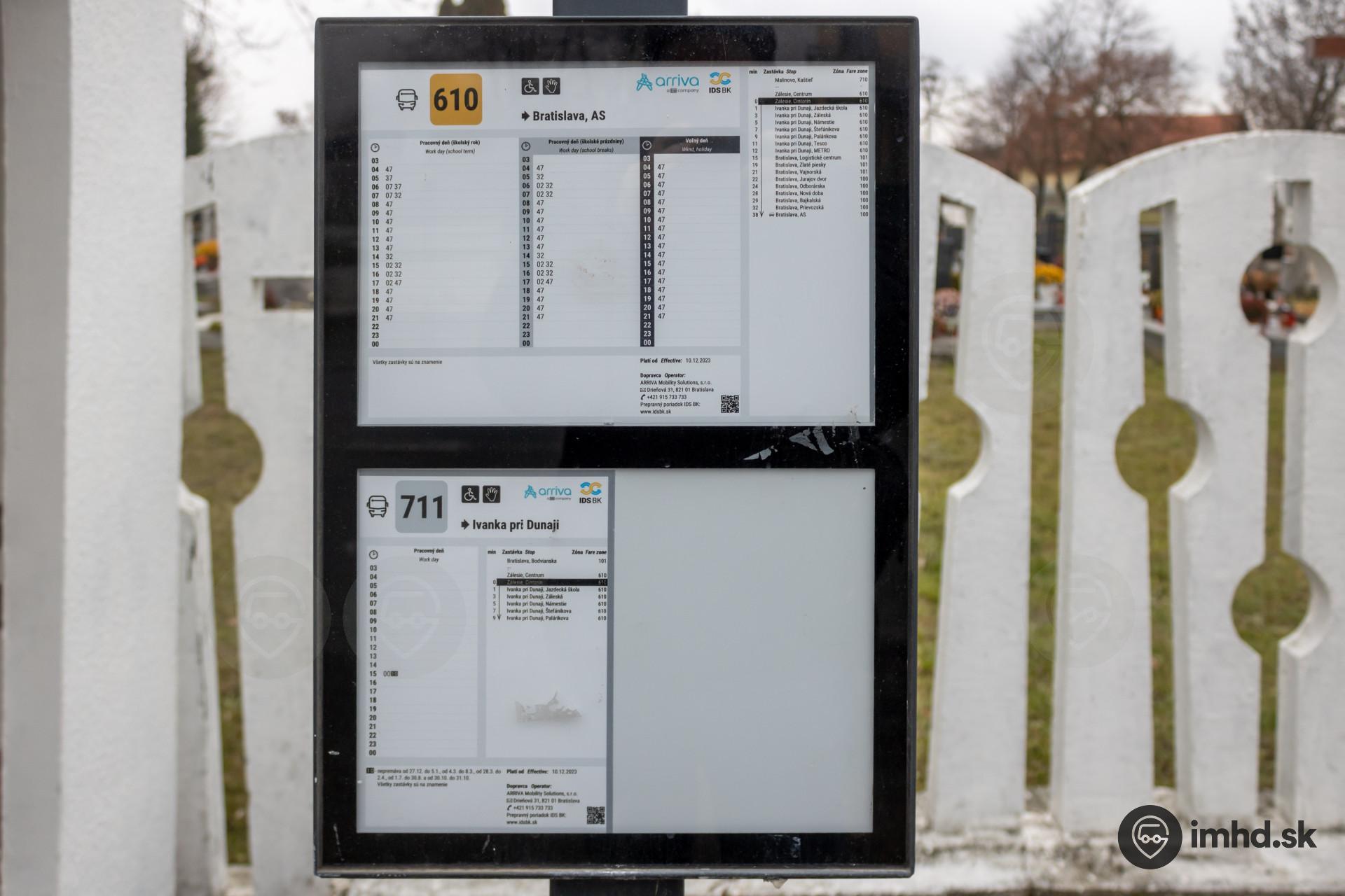 Cestovné poriadky linky 610 a školskej linky 711, v rámci ktorej premáva jeden ranný spoj z Ivanky pri Dunaji do Vrakune a jeden poobedný v opačnom smere.