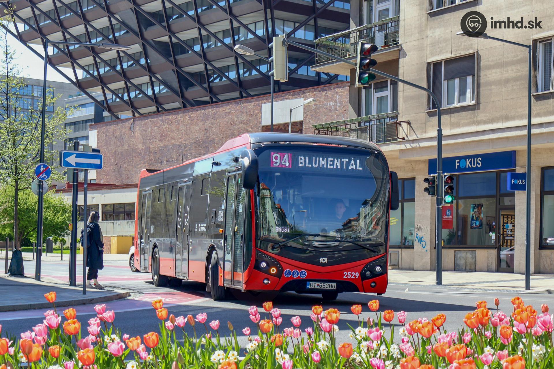 #2529 precháza okolo rozkvitnutých kvetov na zrekonštruovanej križovatke ulíc Mýtna a Vazovova. | |