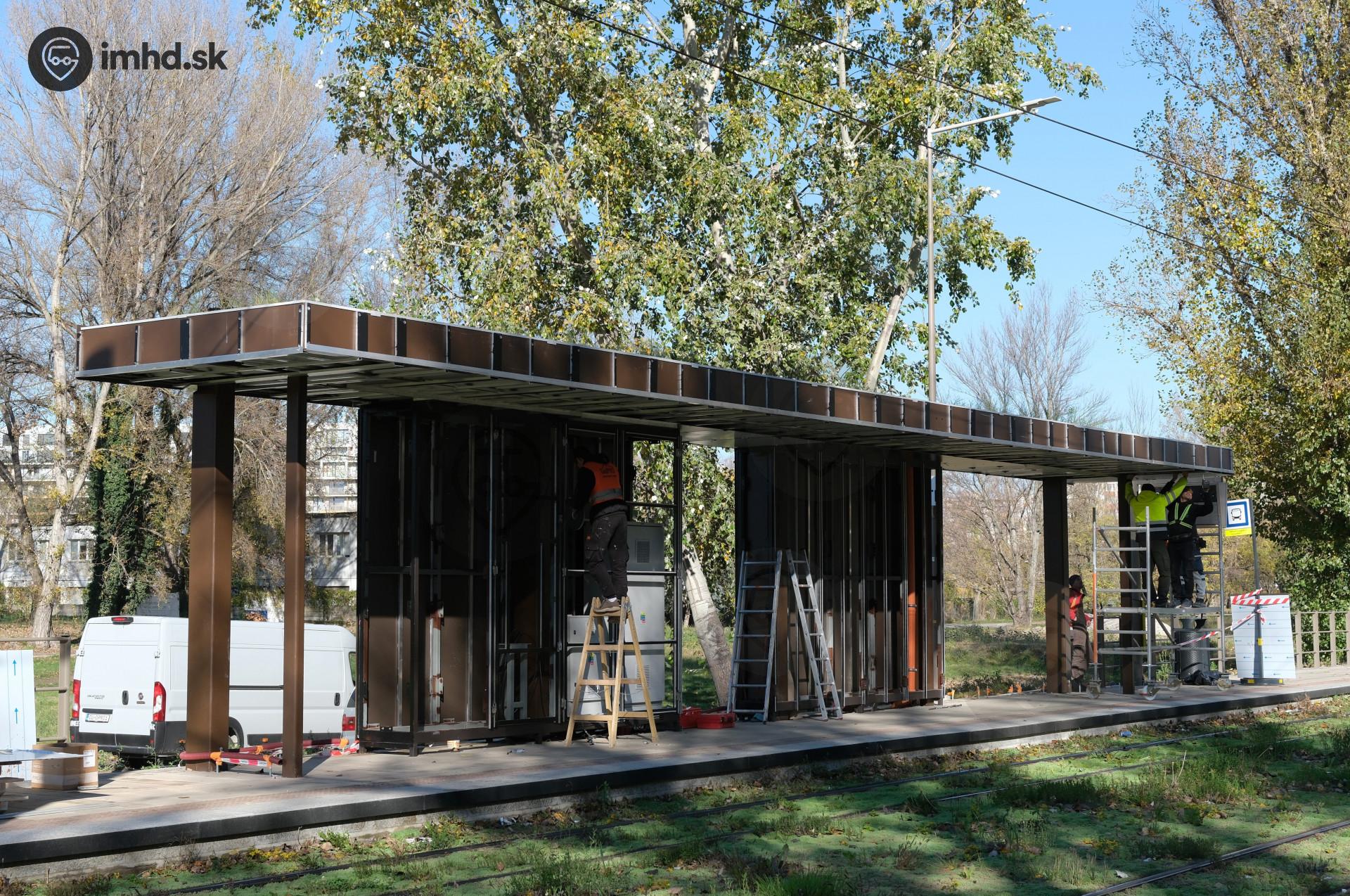 | Po výmene zhotoviteľa prístreškov pokračovalo ich dokončovanie v novembri 2025. Ako prvé boli dokončované prístrešky na zastávke Gessayova. | |